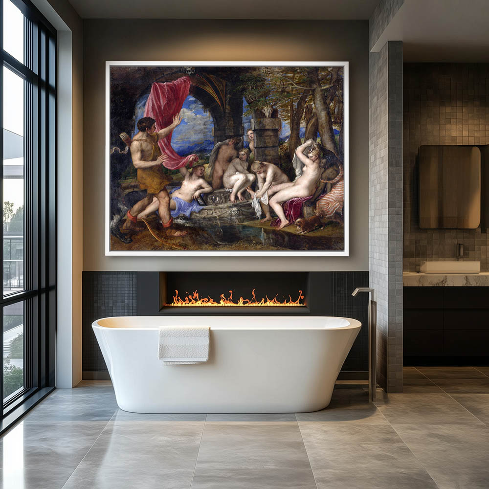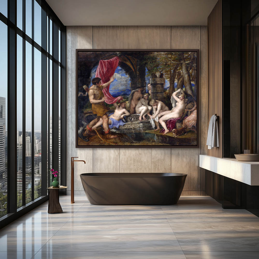 Vintage Figurative Nude Painting of Diana and Actaeon