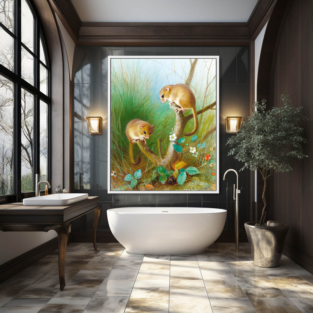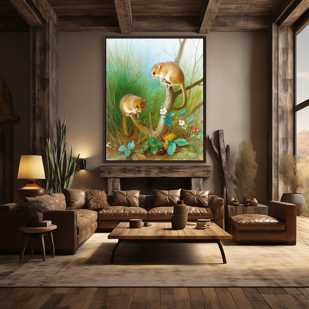 Painting of Mice in the Grass Resting on the Limbs of a Small Tree