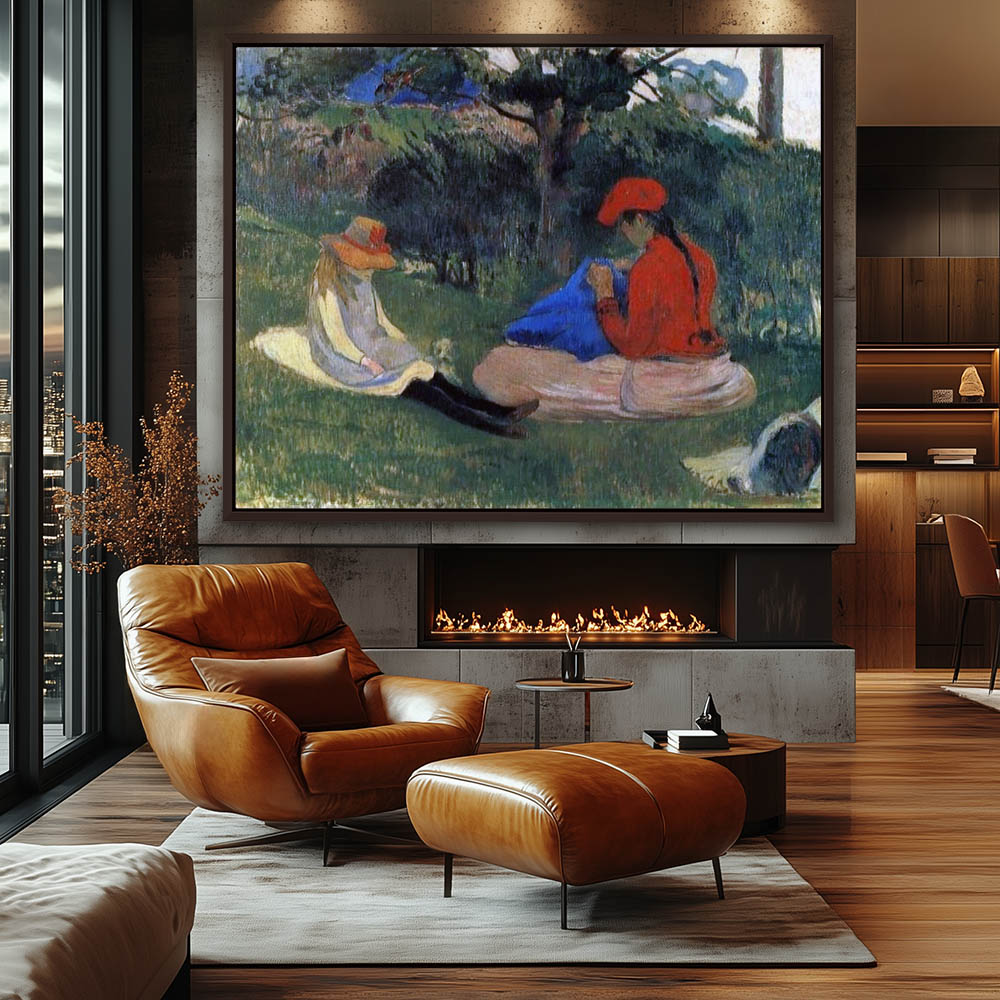 Vintage Figurative Painting of a Woman and child in the Grass