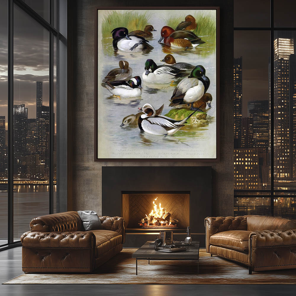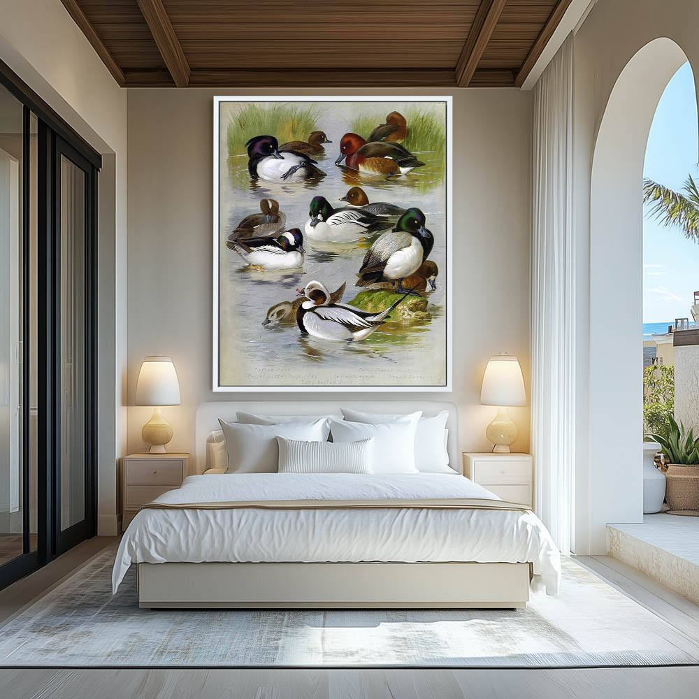 Painting of Various Ducks on the Water