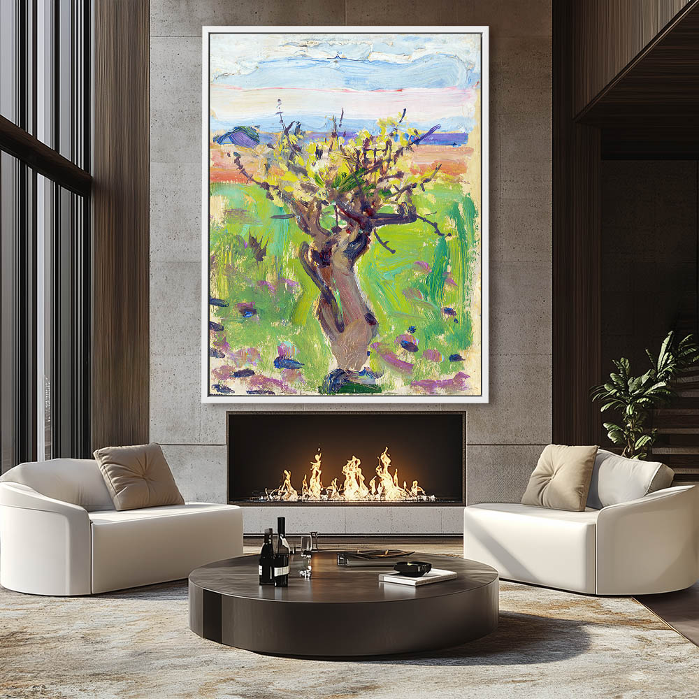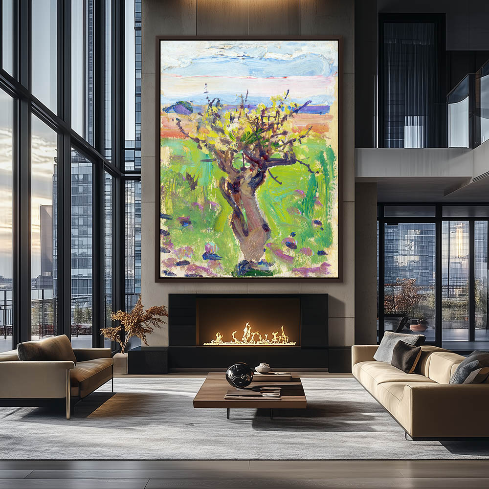 Abstract Landscape Painting with an African Dwarf Tree in the Desert