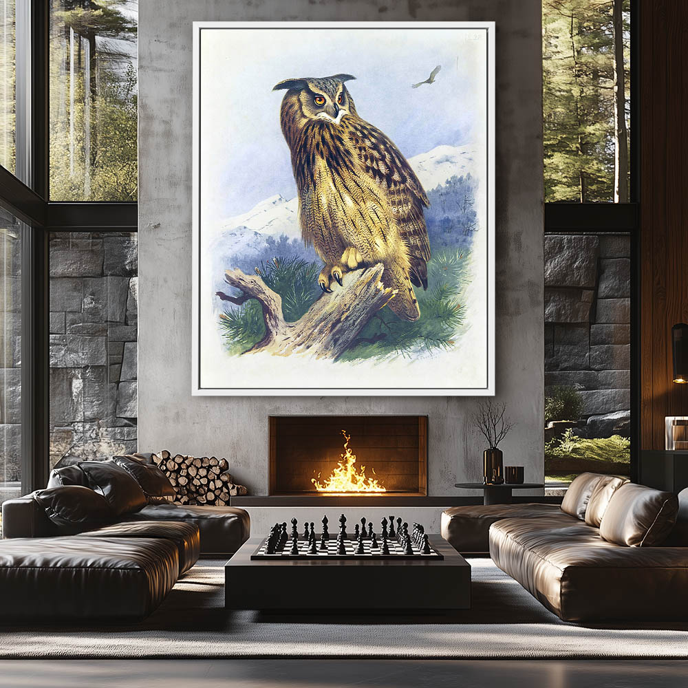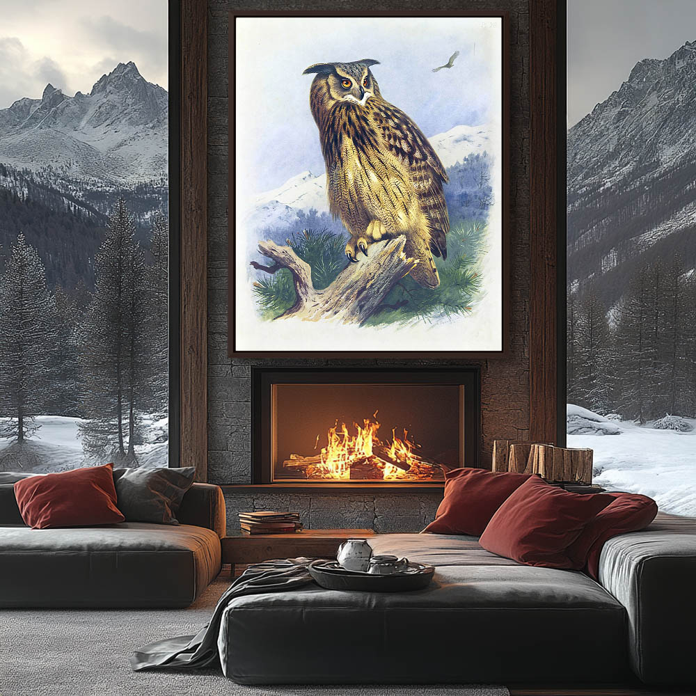 Painting of an Eagle Owl Perched on a Log