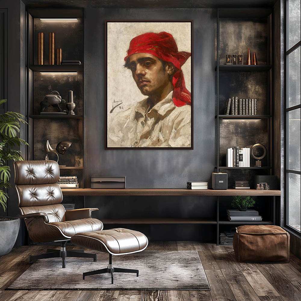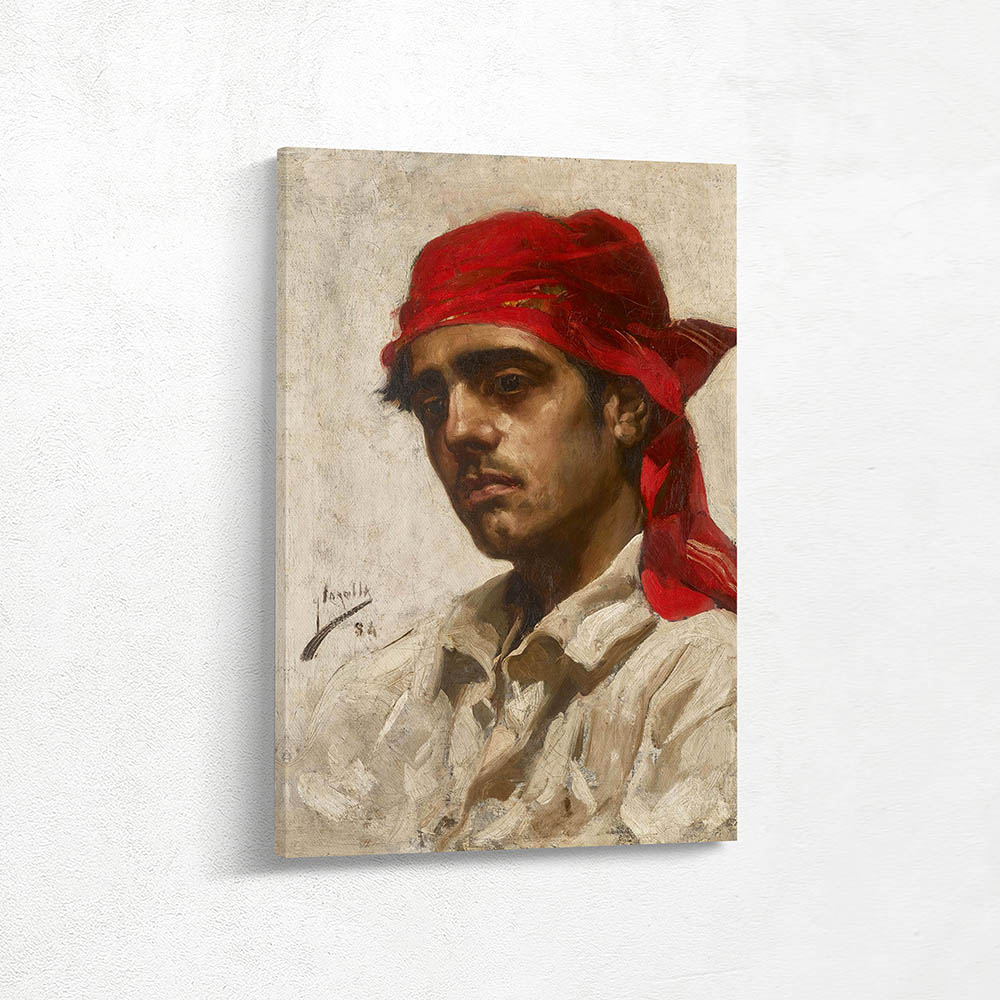 Portrait of a man with a red scarf tied on his head