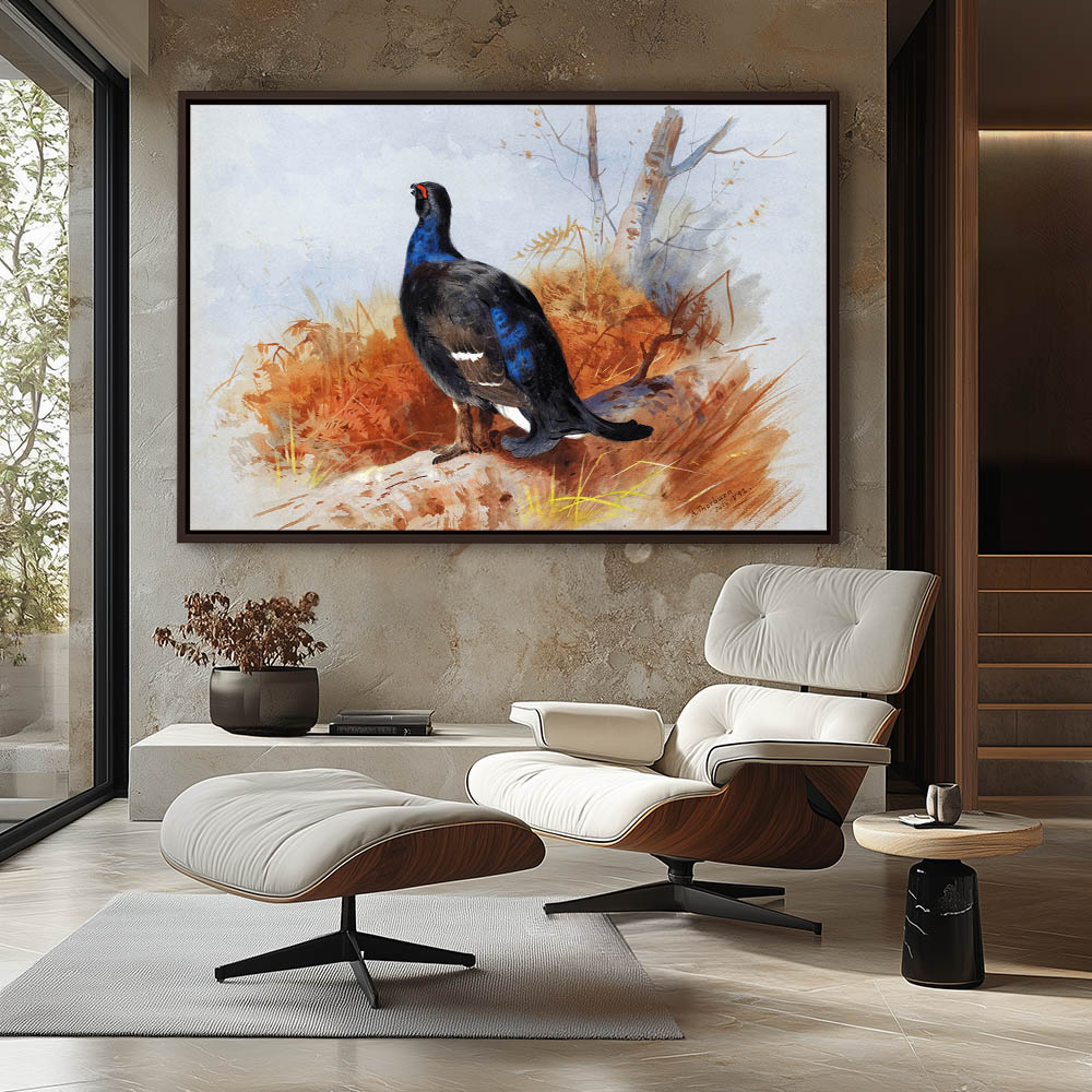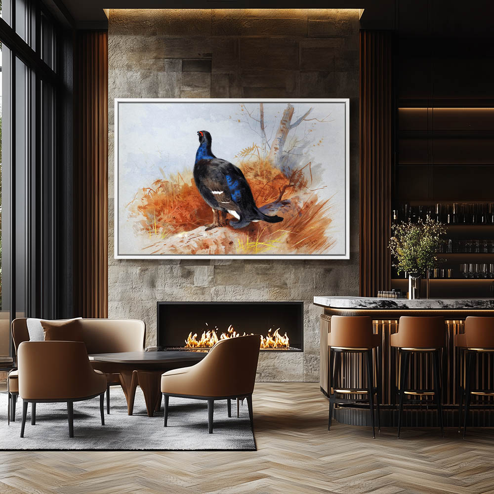 Painting of a English Blackcock Gamebird on a Log