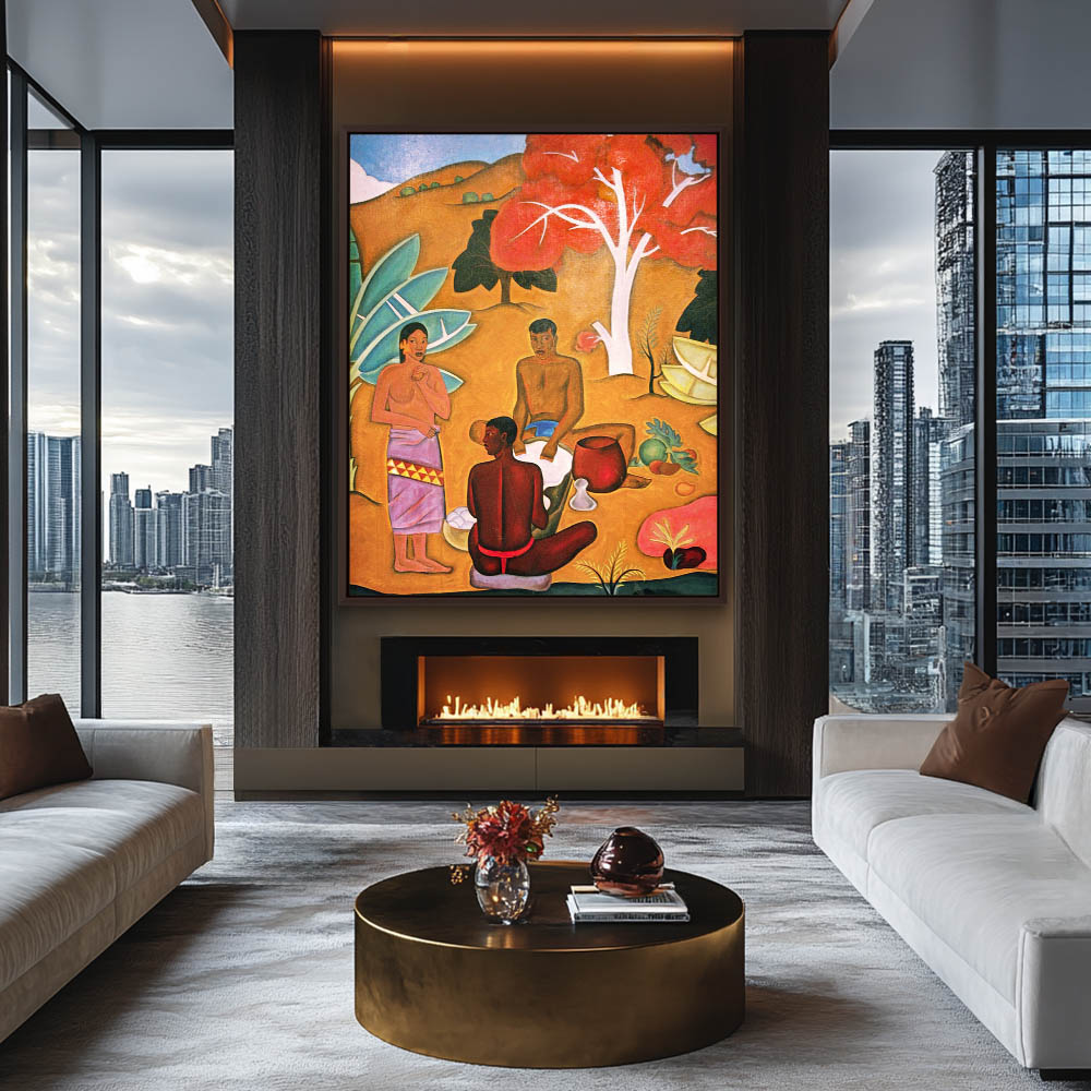 Abstract Landscape Painting with Figures Working