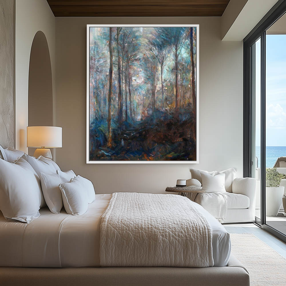 Landscape Painting with Fireflies In the Forest at Night