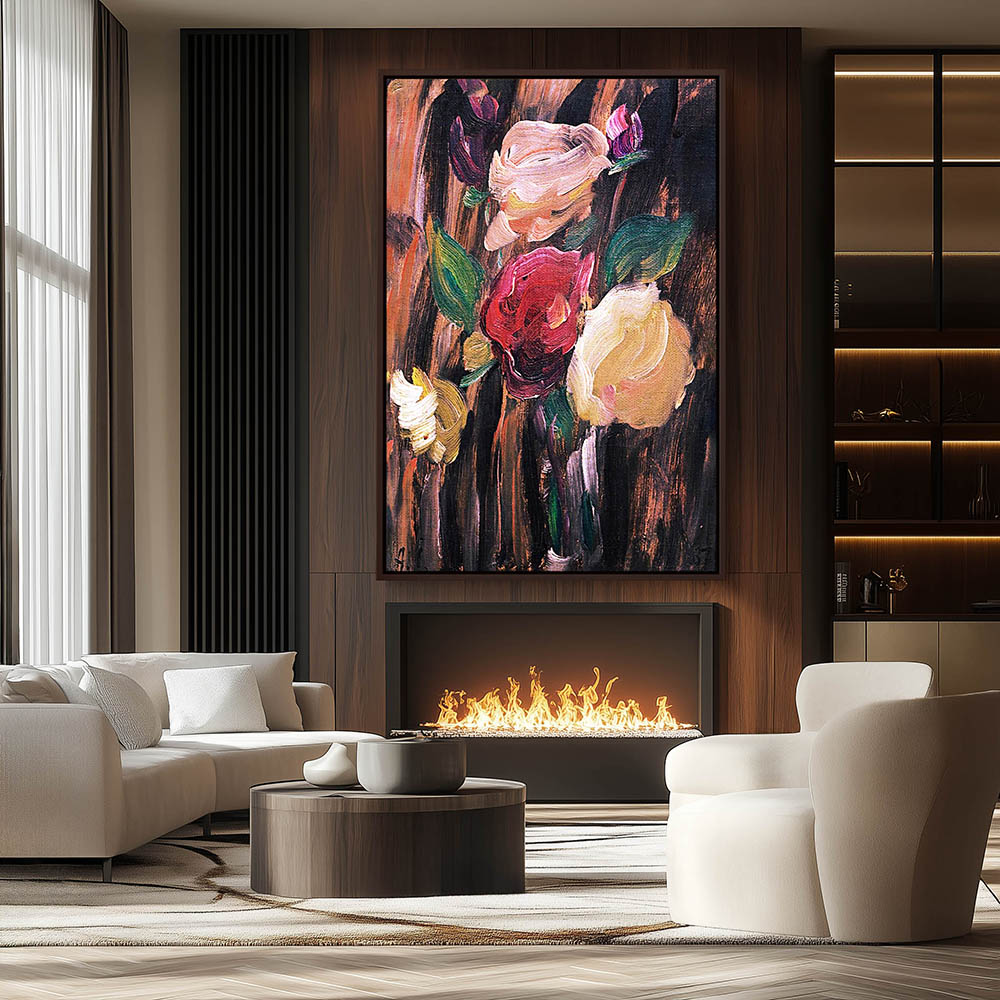 Abstract Still Life Painting with Flowers in a Glass Vase