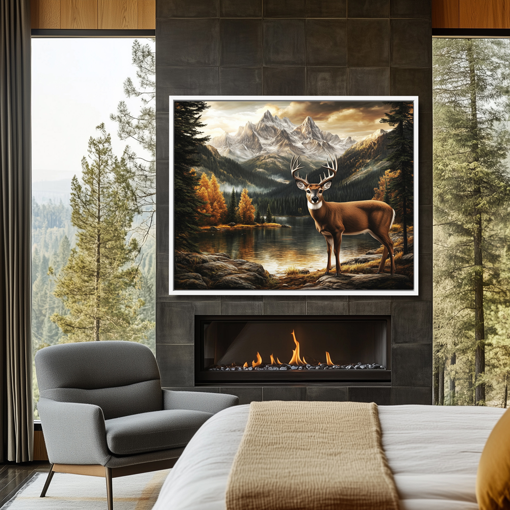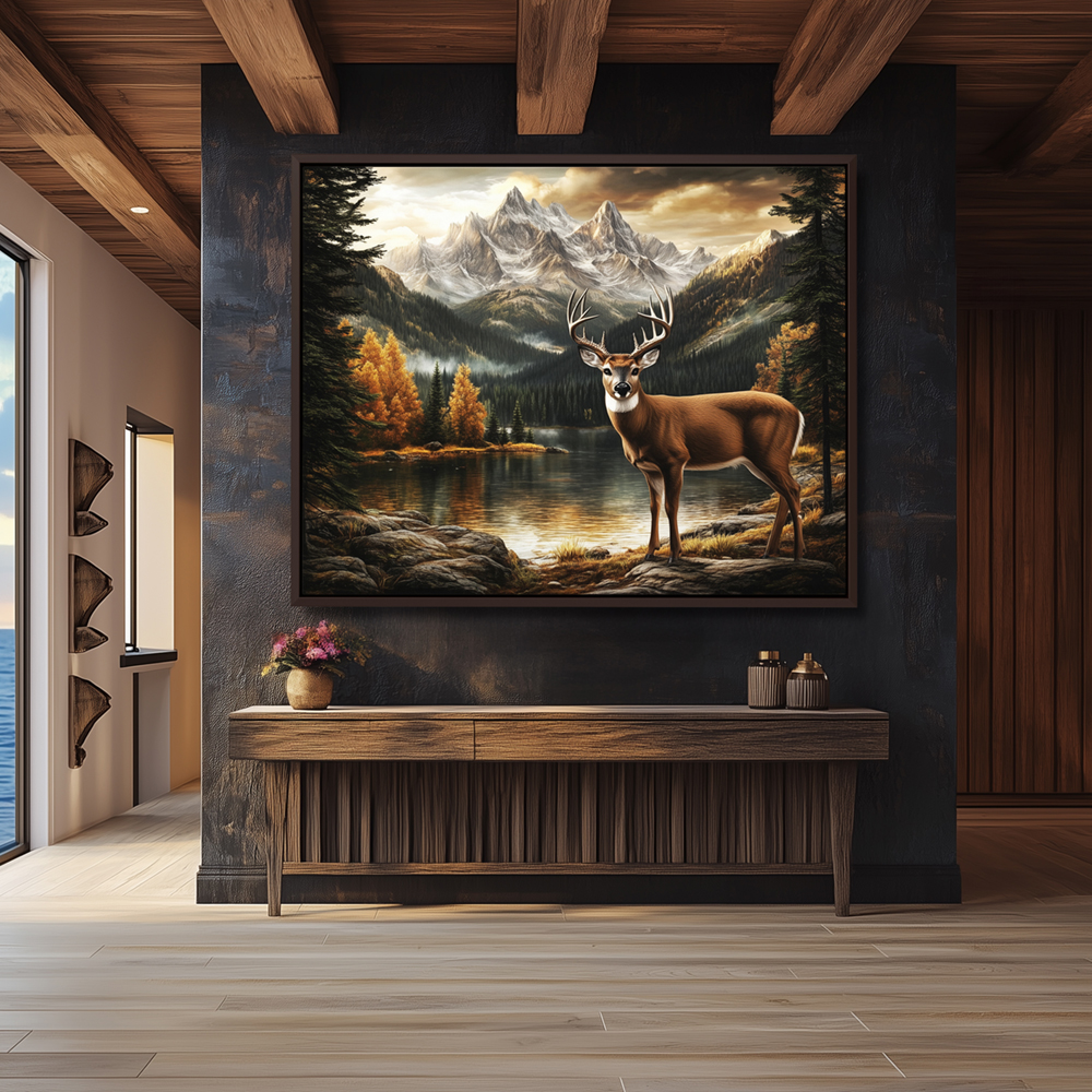 | Contemporary Painting of a Deer in the Forest near a Lake |