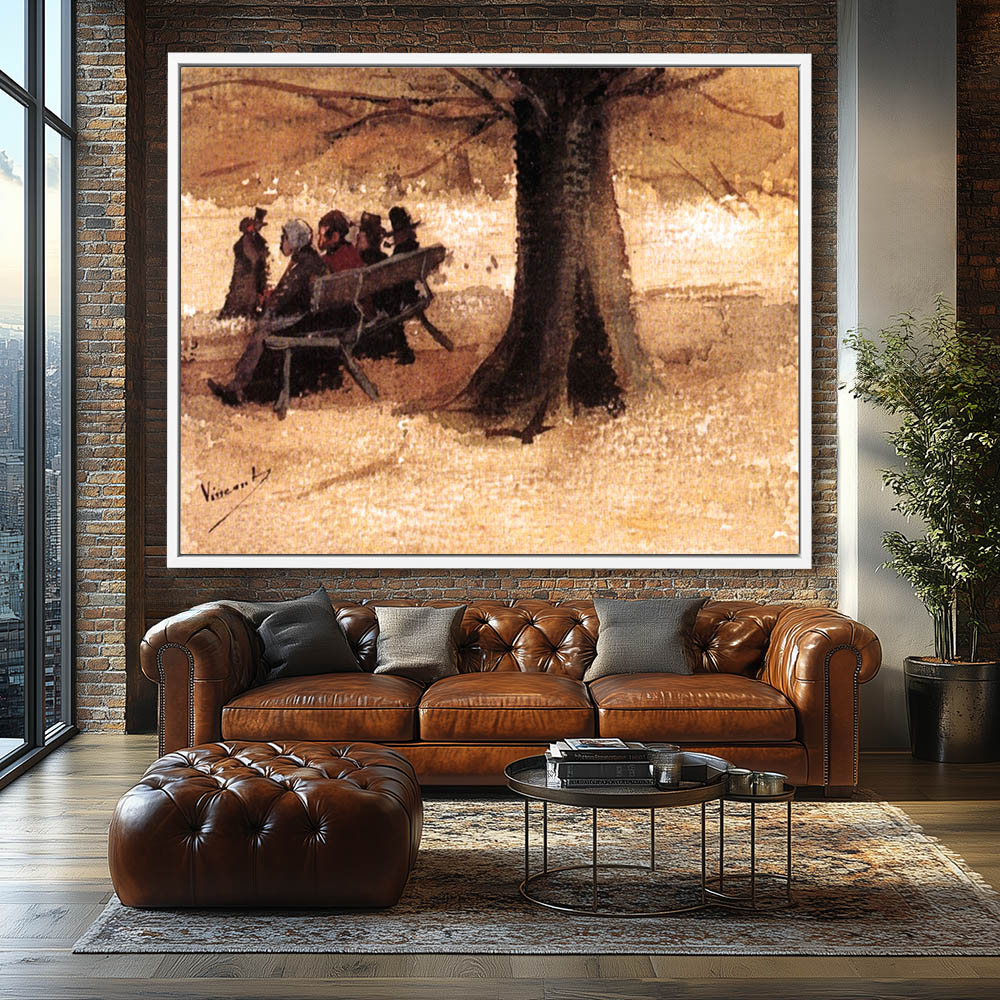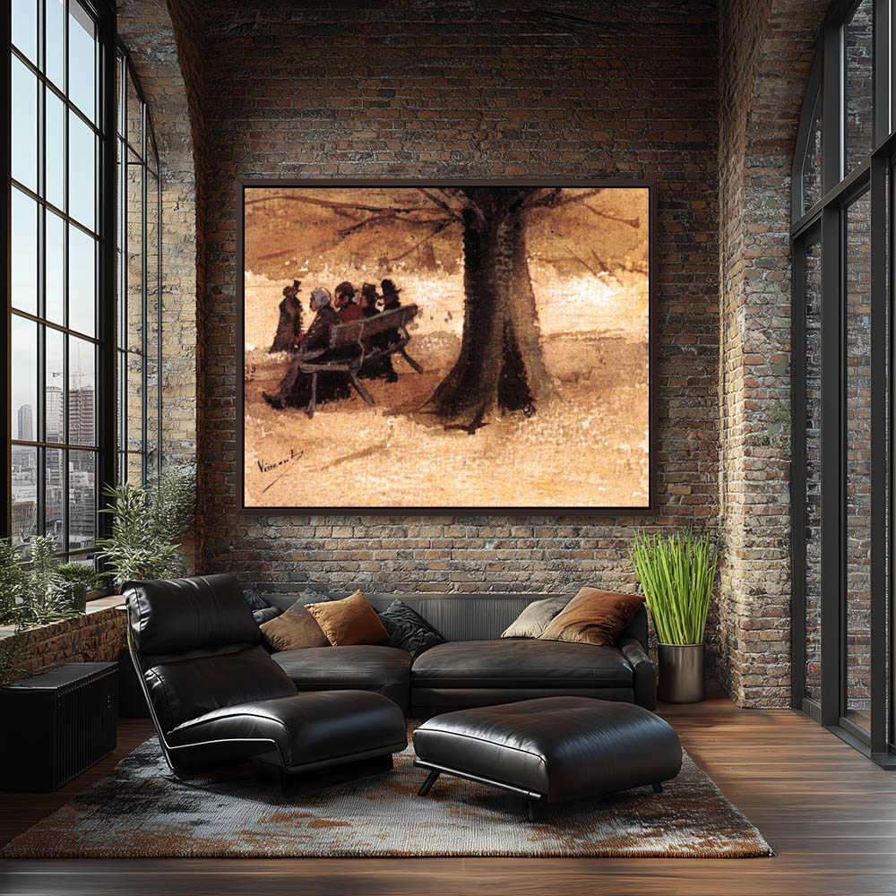 Impressionist Landscape Painting with Figures Resting on a Bench