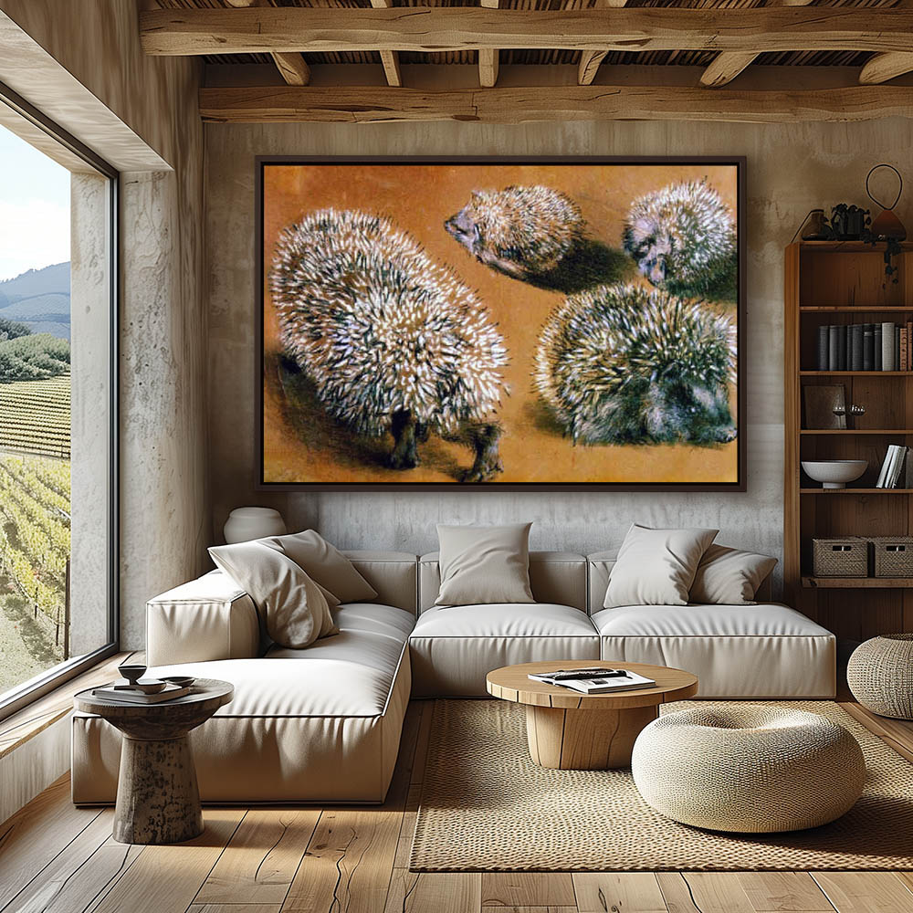 Vintage Chalk Drawing of the Study of a Hedgehog