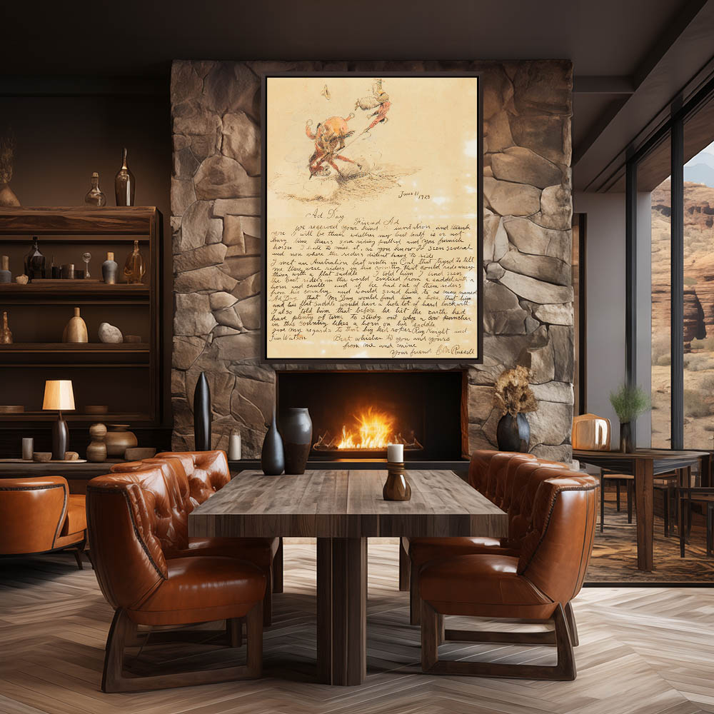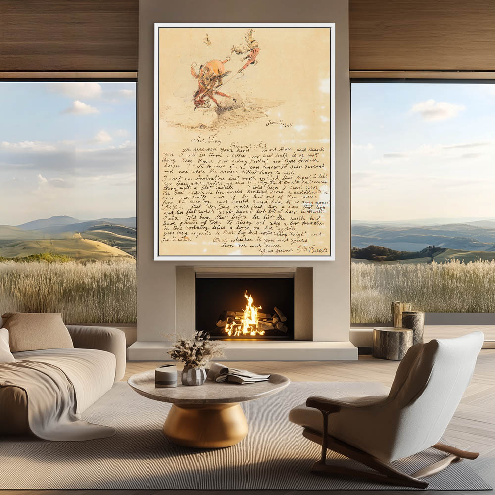 Letter from Charles Russell to Ad Day with a watercolor sketch of a horse bucking a rider