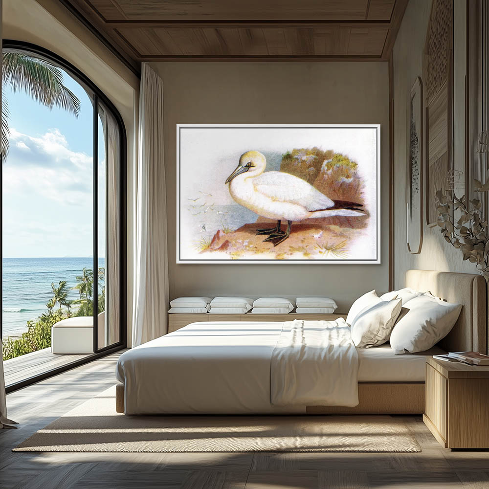 Painting of a Gannet Bird Sitting on a Rock on Shore