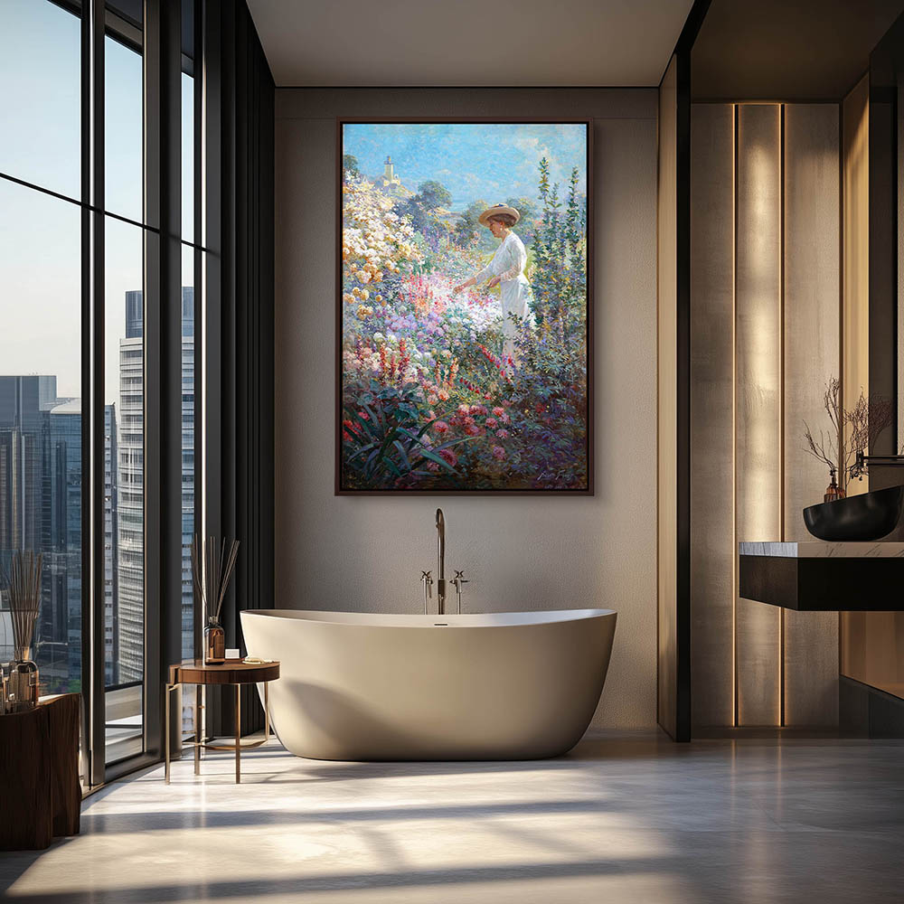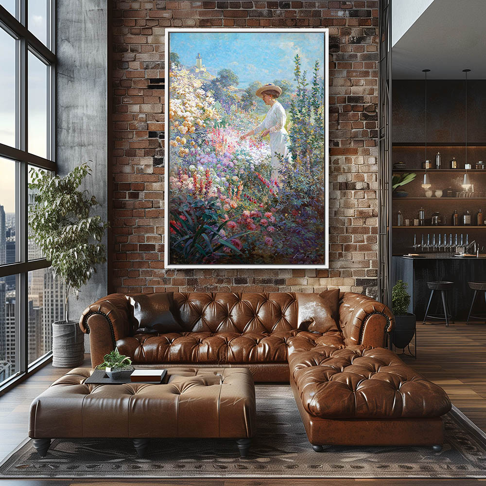 Vintage Flower Painting with a Lady in the Flower Garden at Finisterre Eastern Point Gloucerter Maine