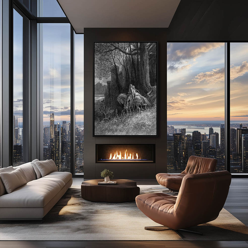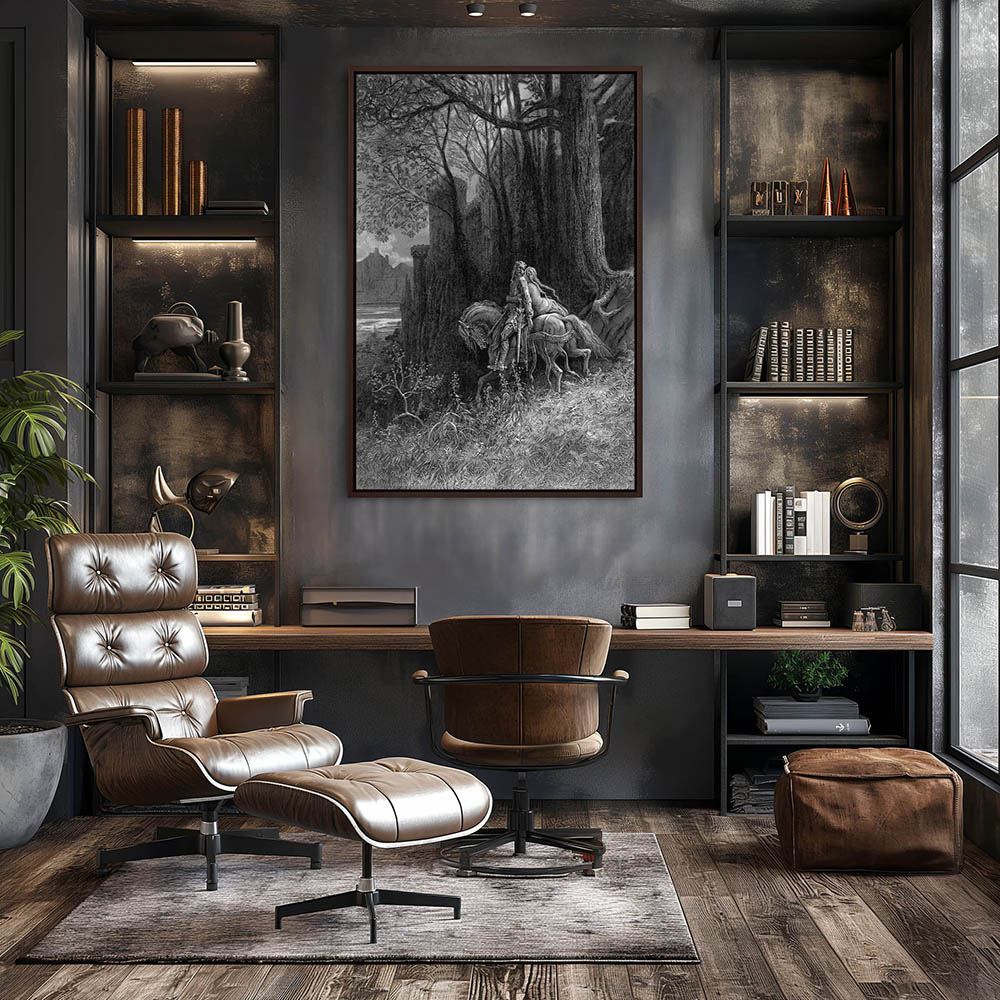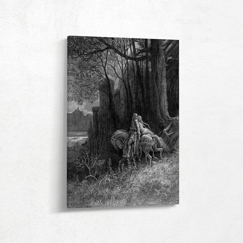 Vintage Etching of Geraint and Enid Ride Away