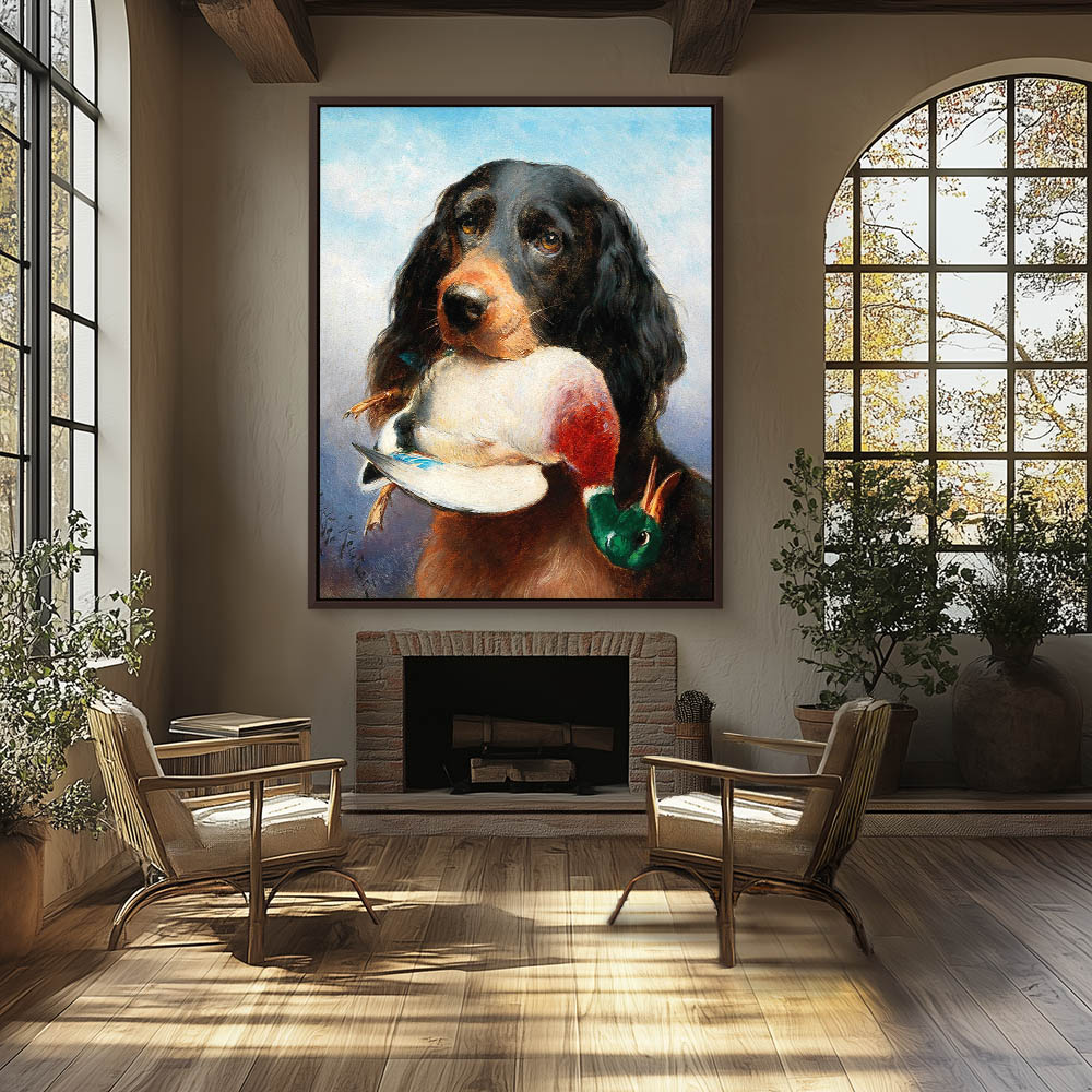 Gordon Setter with Mallard Duck