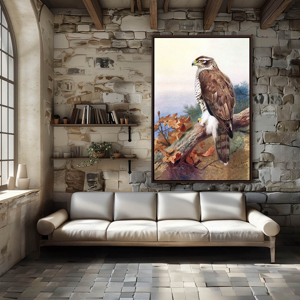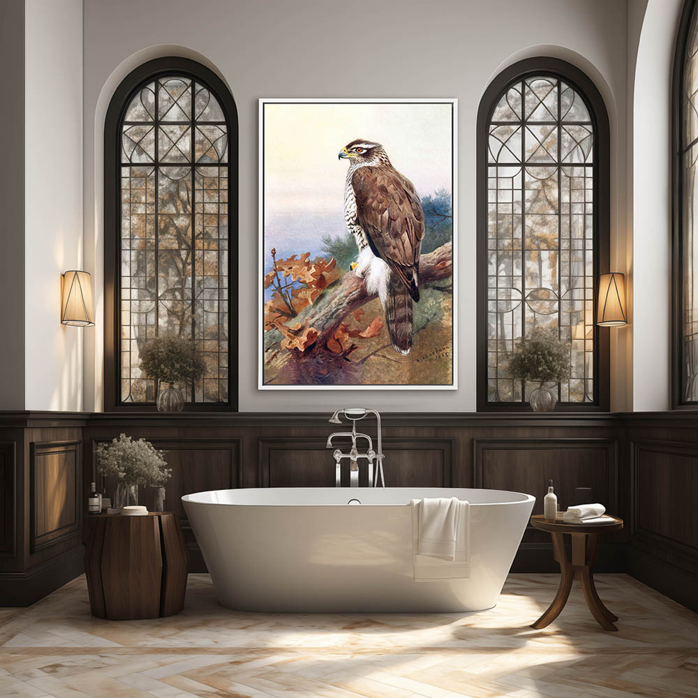 Painting of a Goshawk Bird of Prey Perched on a Limb