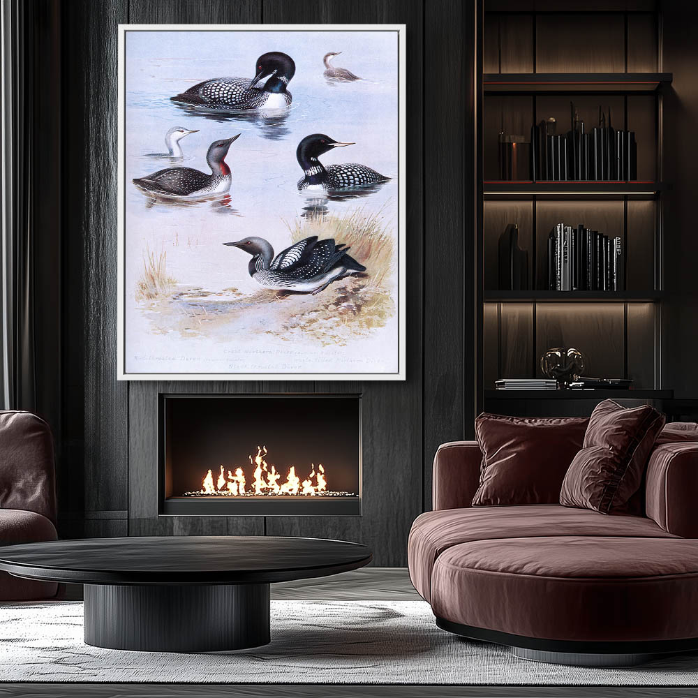 Painting of Great Northern Diver Ducks in the Water