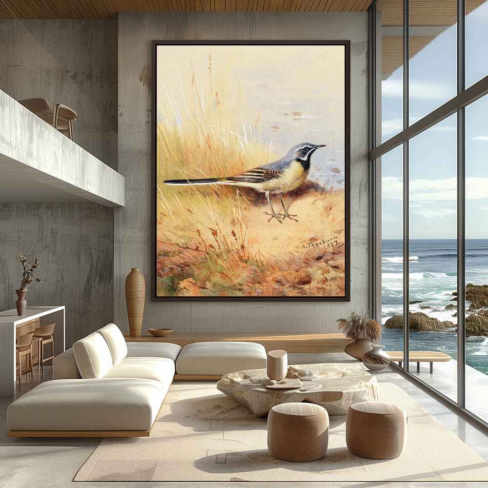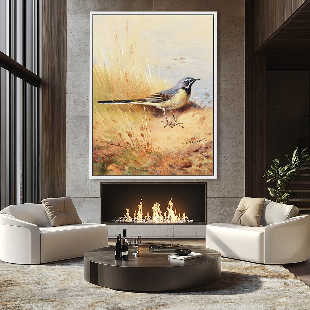 Painting of a Grey Wagtail in the Grass