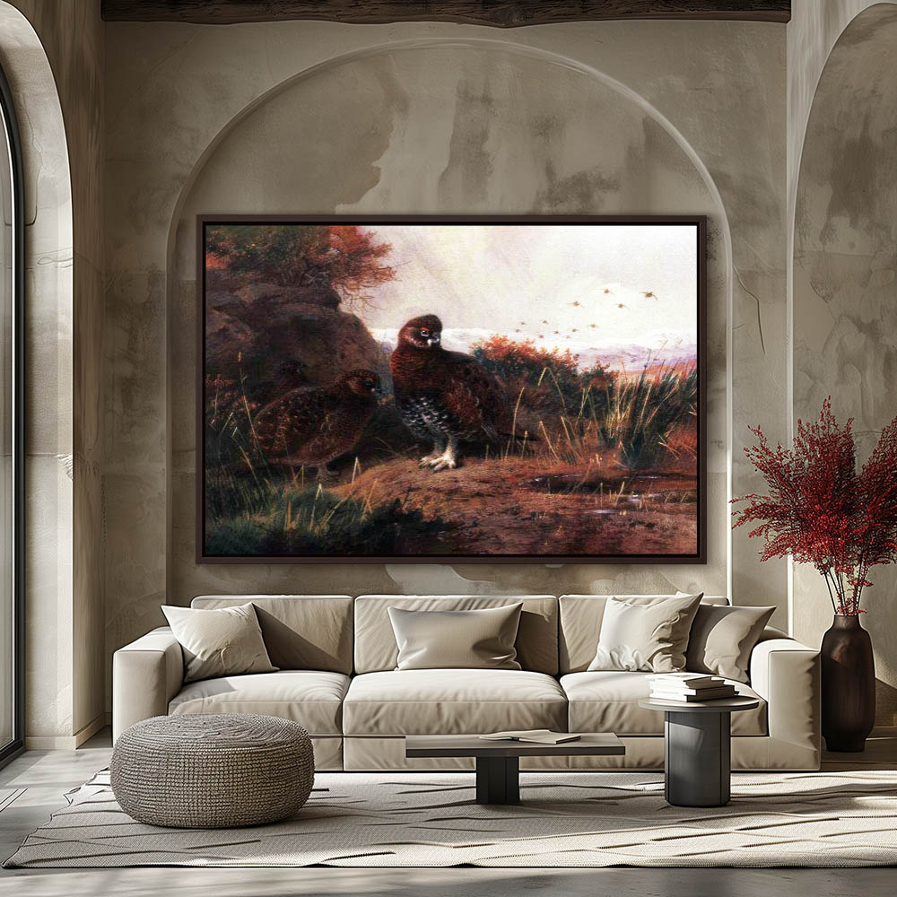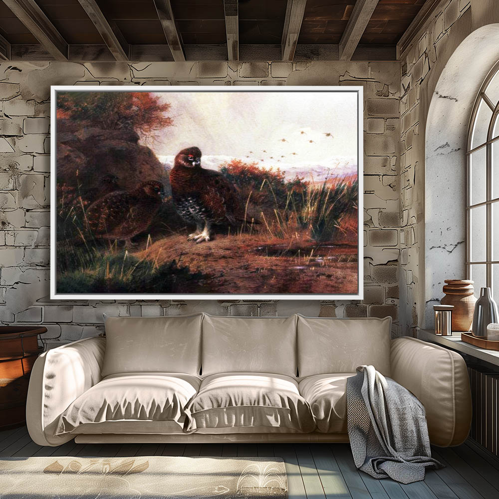 Painting of Grouse Resting by a Pool of Water