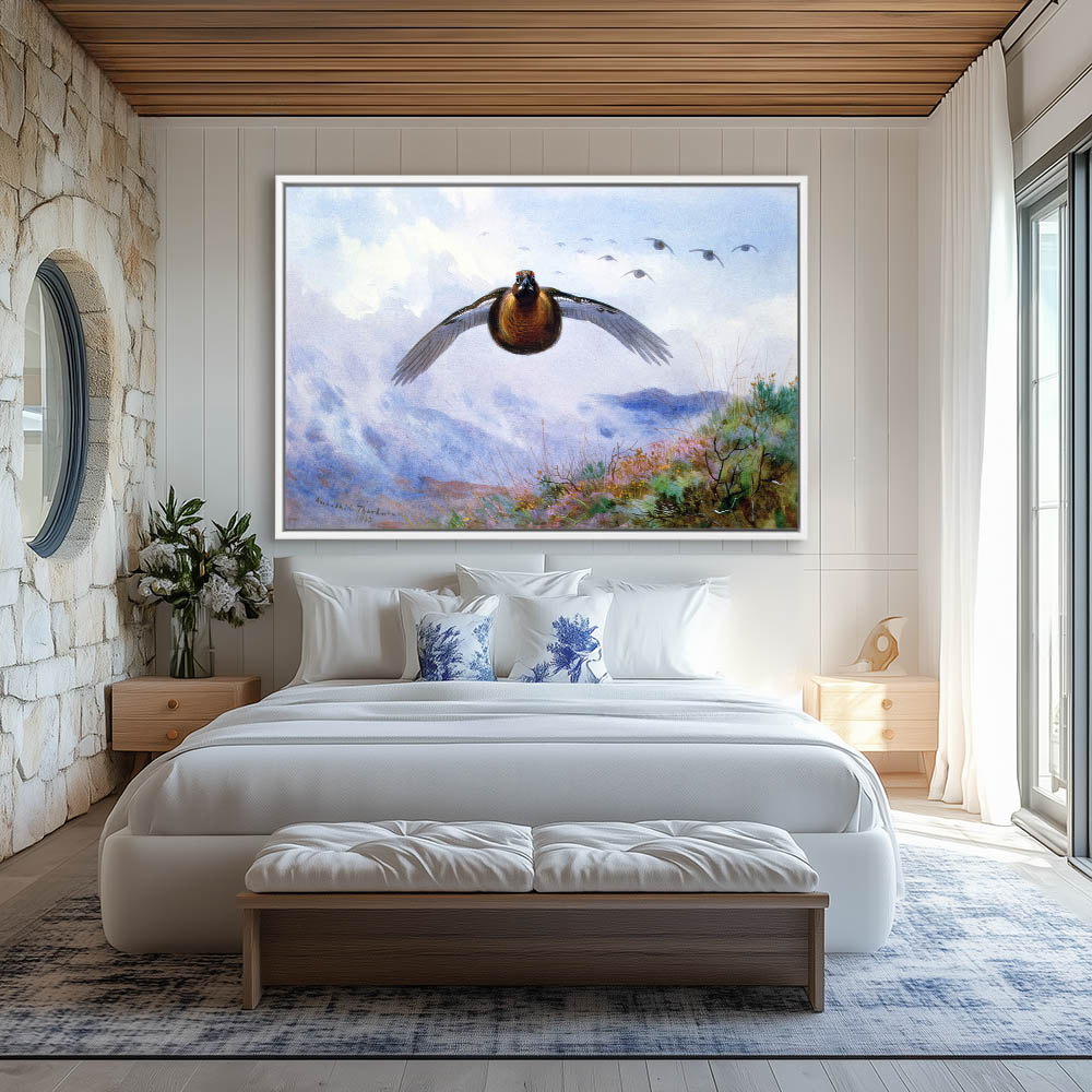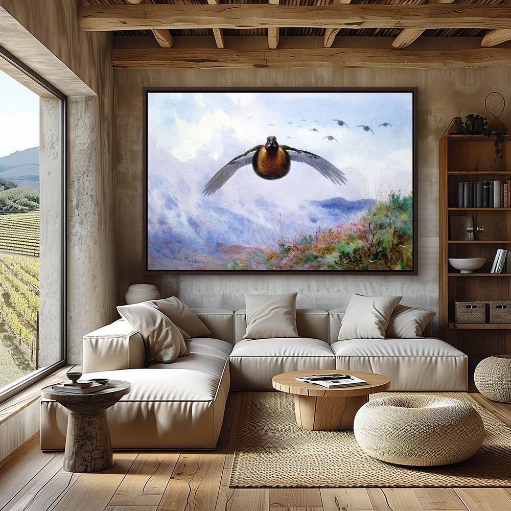 Mountain Landscape Painting with Grouse in Flight