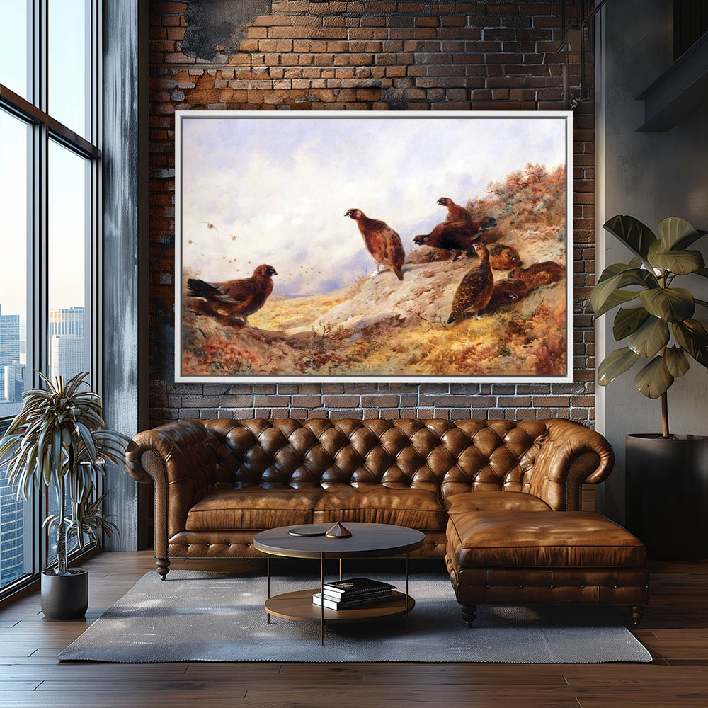 Painting of Grouse Resting on a Rock
