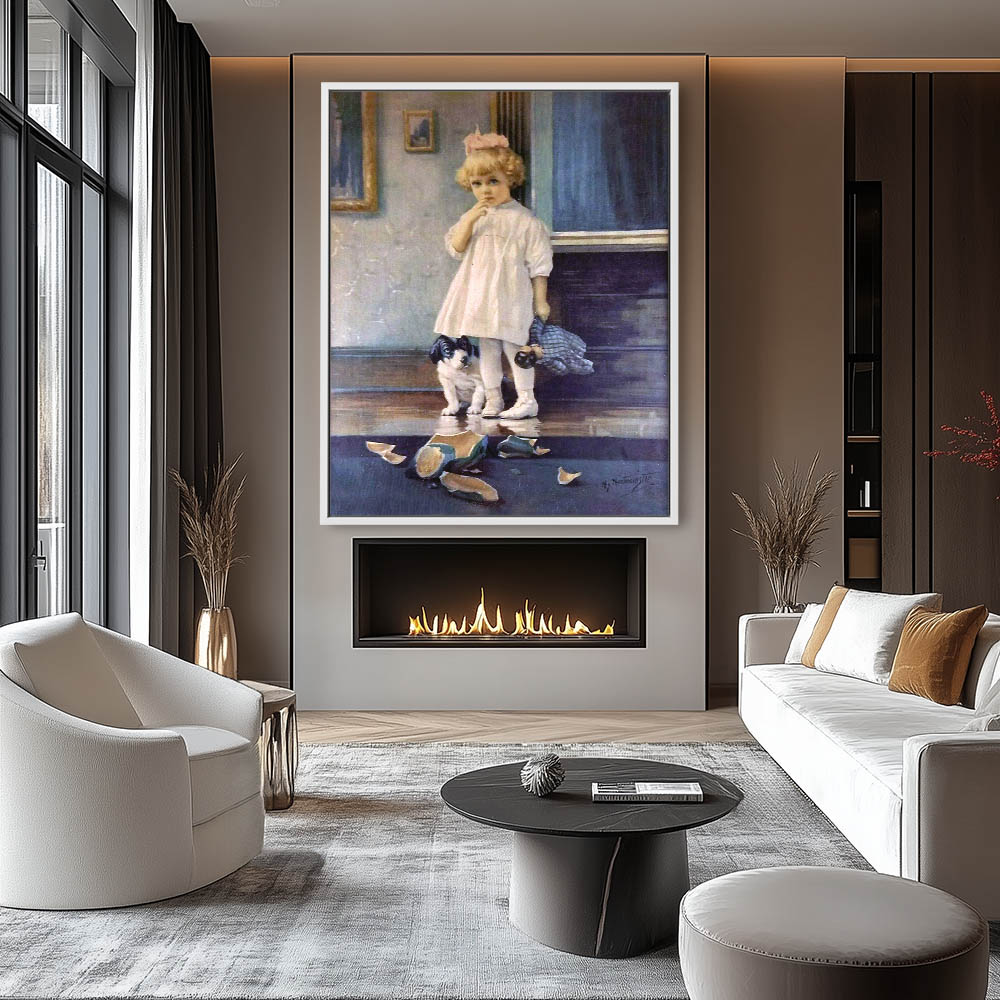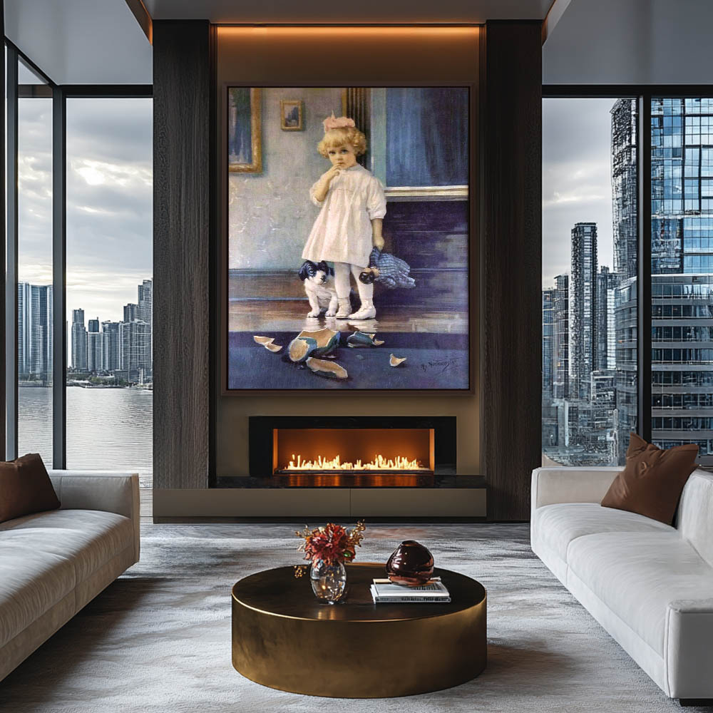 Figurative Painting of a Child and a Broken Vase