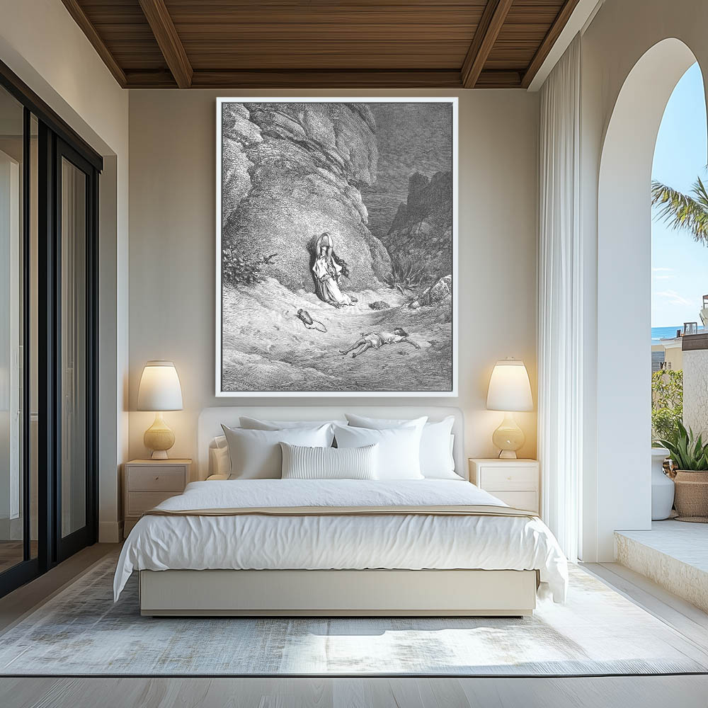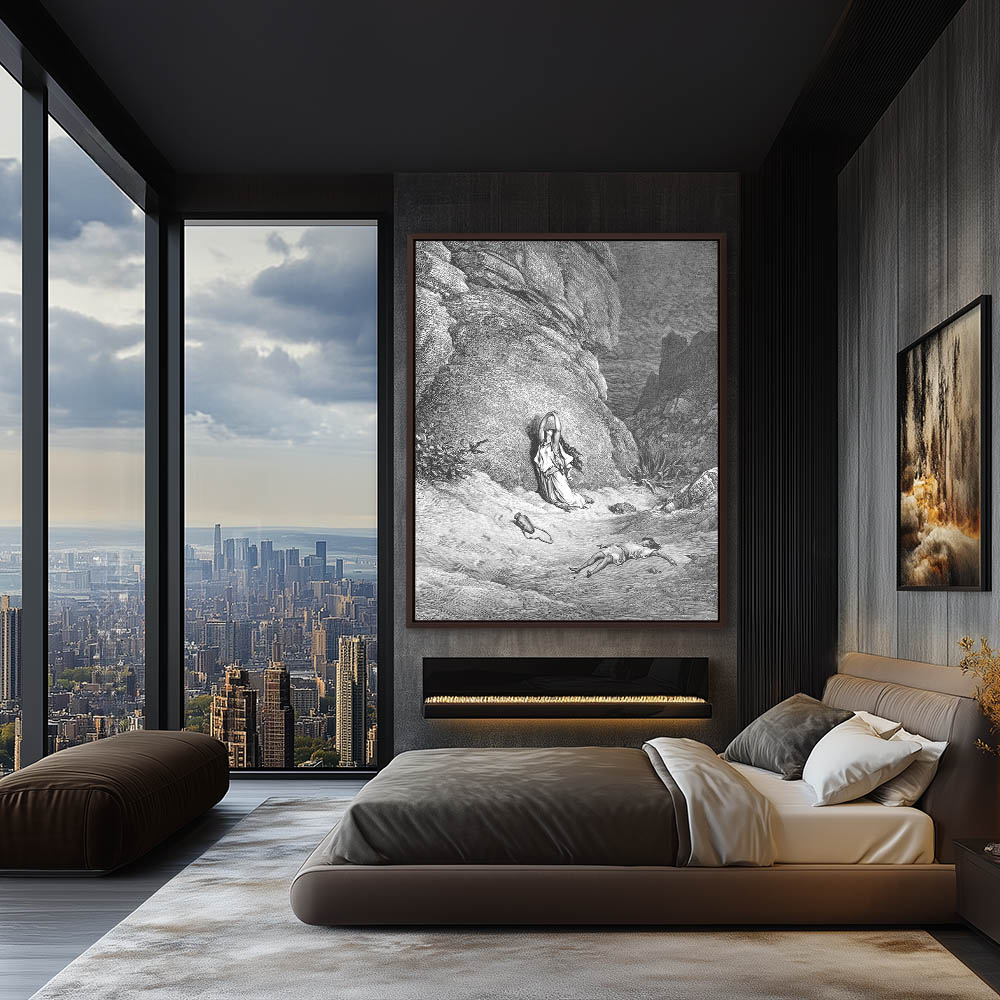 Vintage Etching of Hagar and Ishmael in the Wilderness