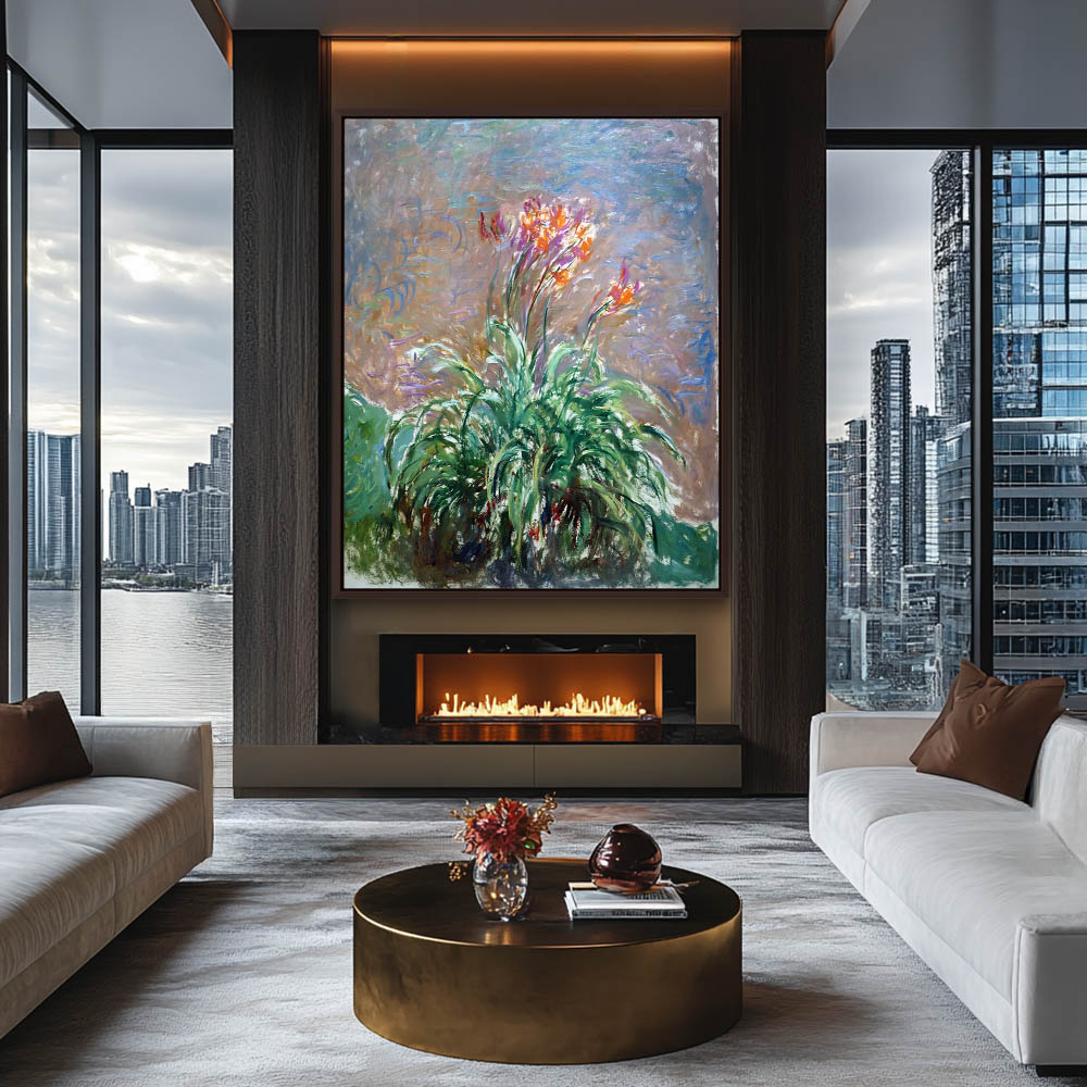 Vintage Garden Landscape Painting of Hamerocallis Flower