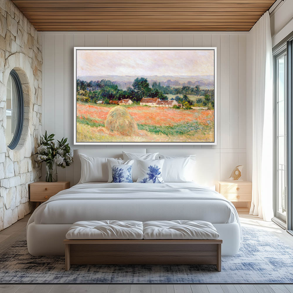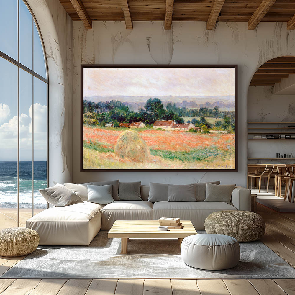 Vintage Landscape Painting of Haystacks in a Meadow Near Giverny