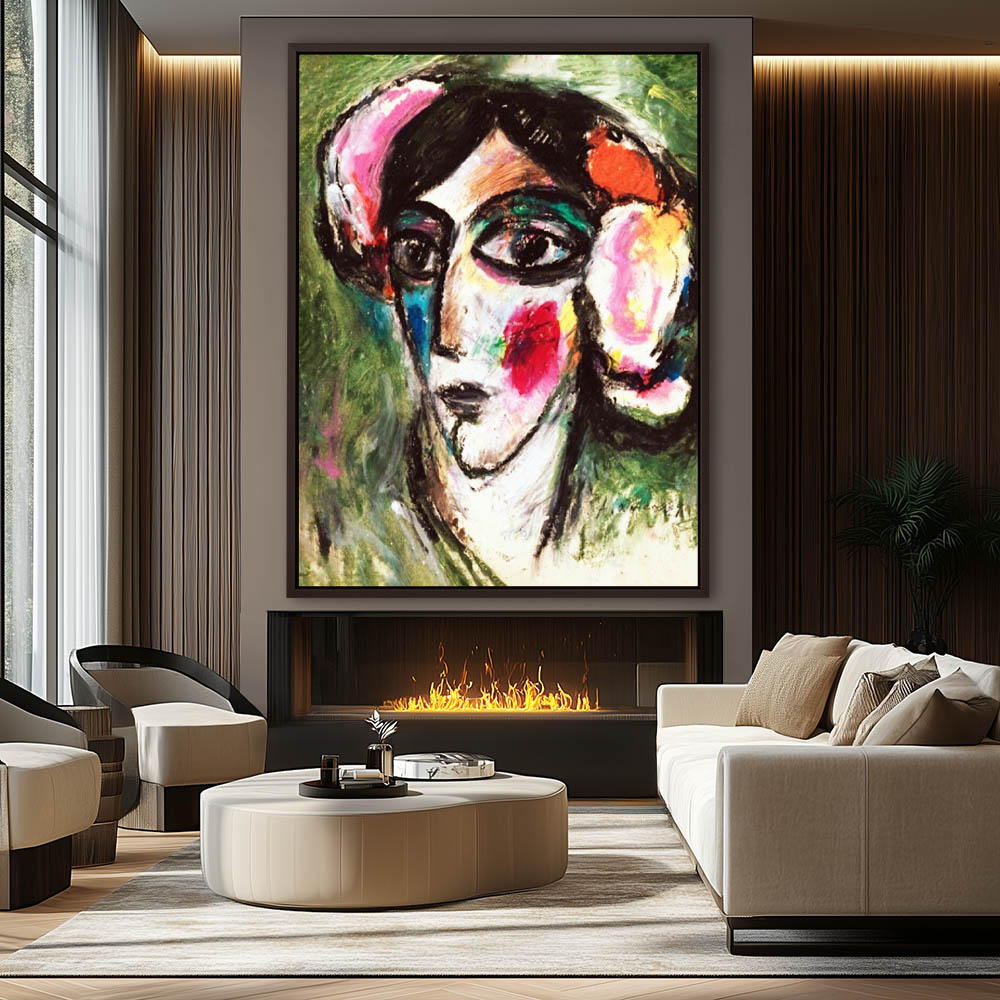 Abstract Figurative Portrait Painting of a Girl with Flowers in her Hair
