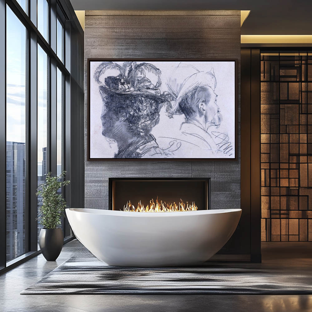 Vintage Figurative Drawing of the Heads of a Man and Woman
