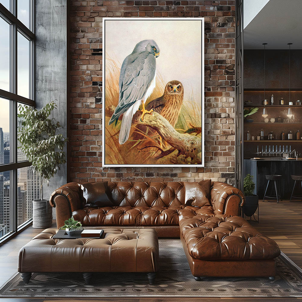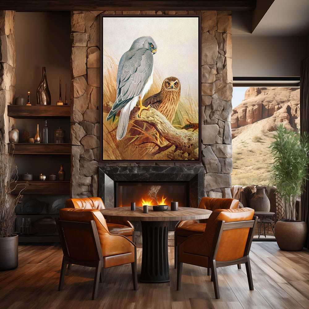 Painting of Hen Harrier Birds of Prey Perched on a Limb