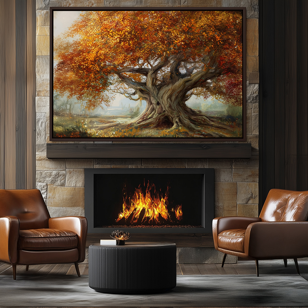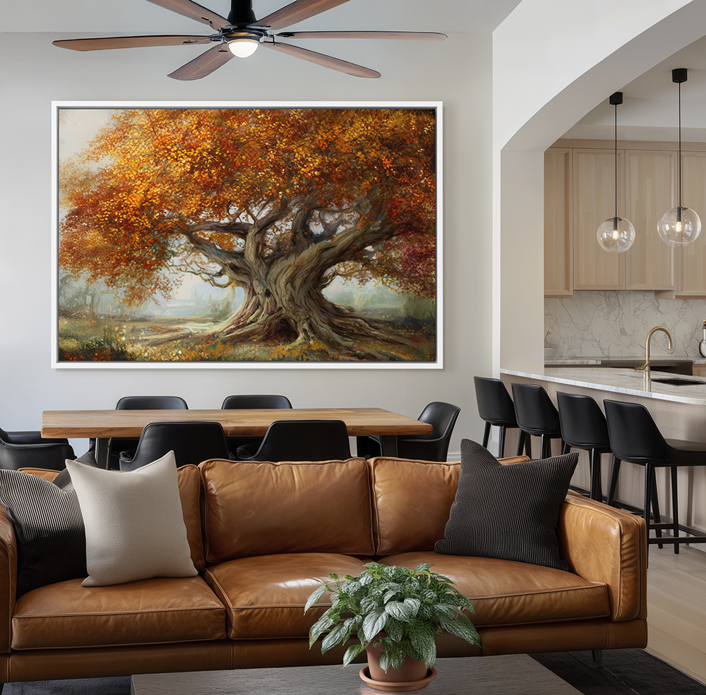 Wall Art Painting of a Huge Majestic Tree in Autumn, Canvas Wall Art Framed with a Floater Frame of your choice of 3 different colors, Metal Wall Art, Framed Prints, Fine Art Prints, Poster Art