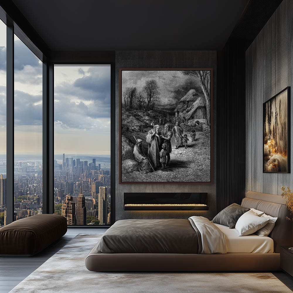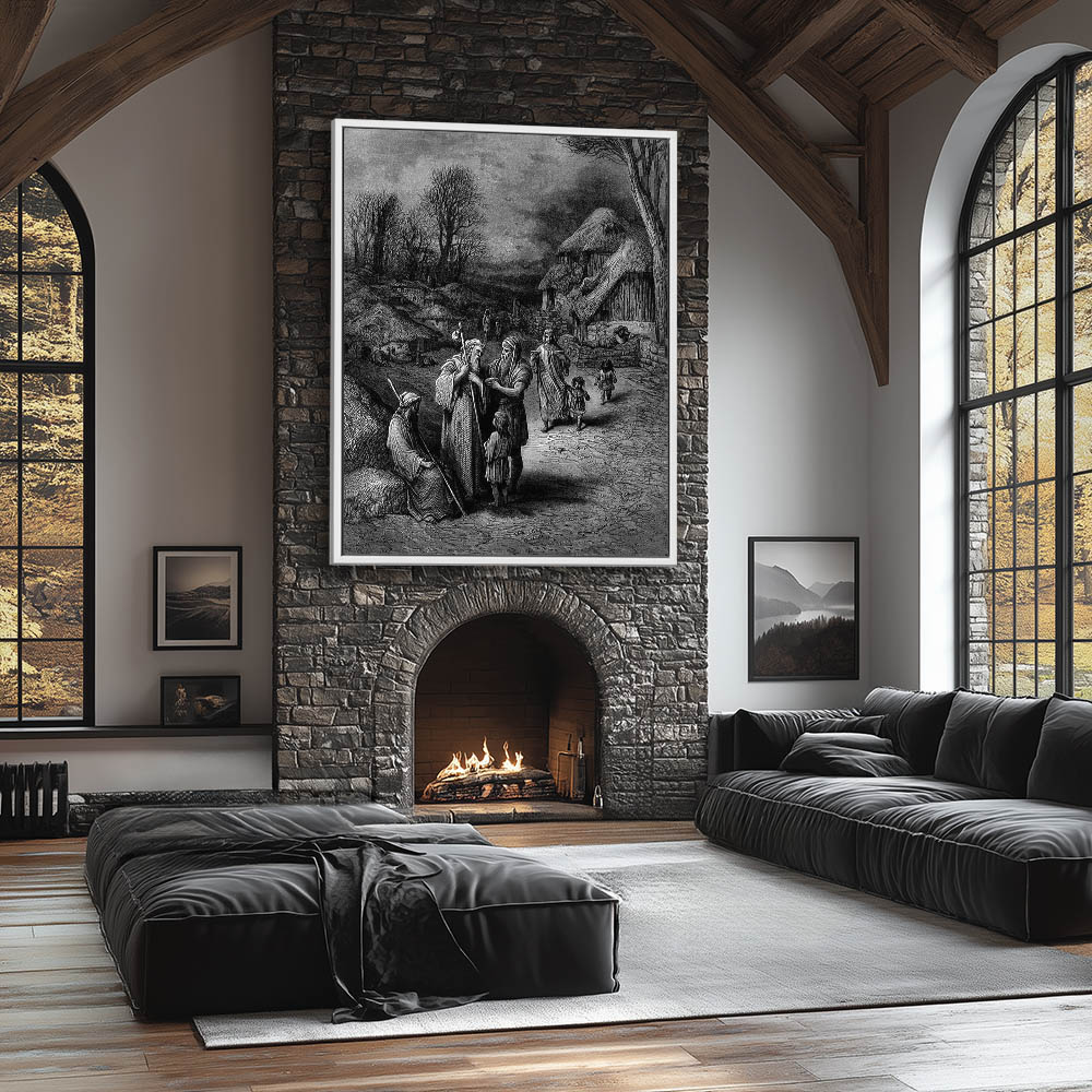 Vintage Etching of Hospitality of Barbarians to Pilgrims