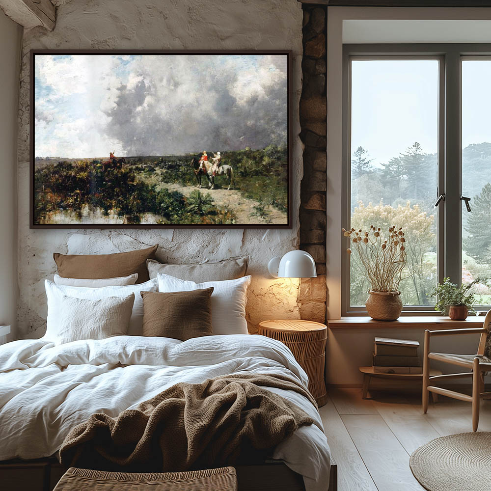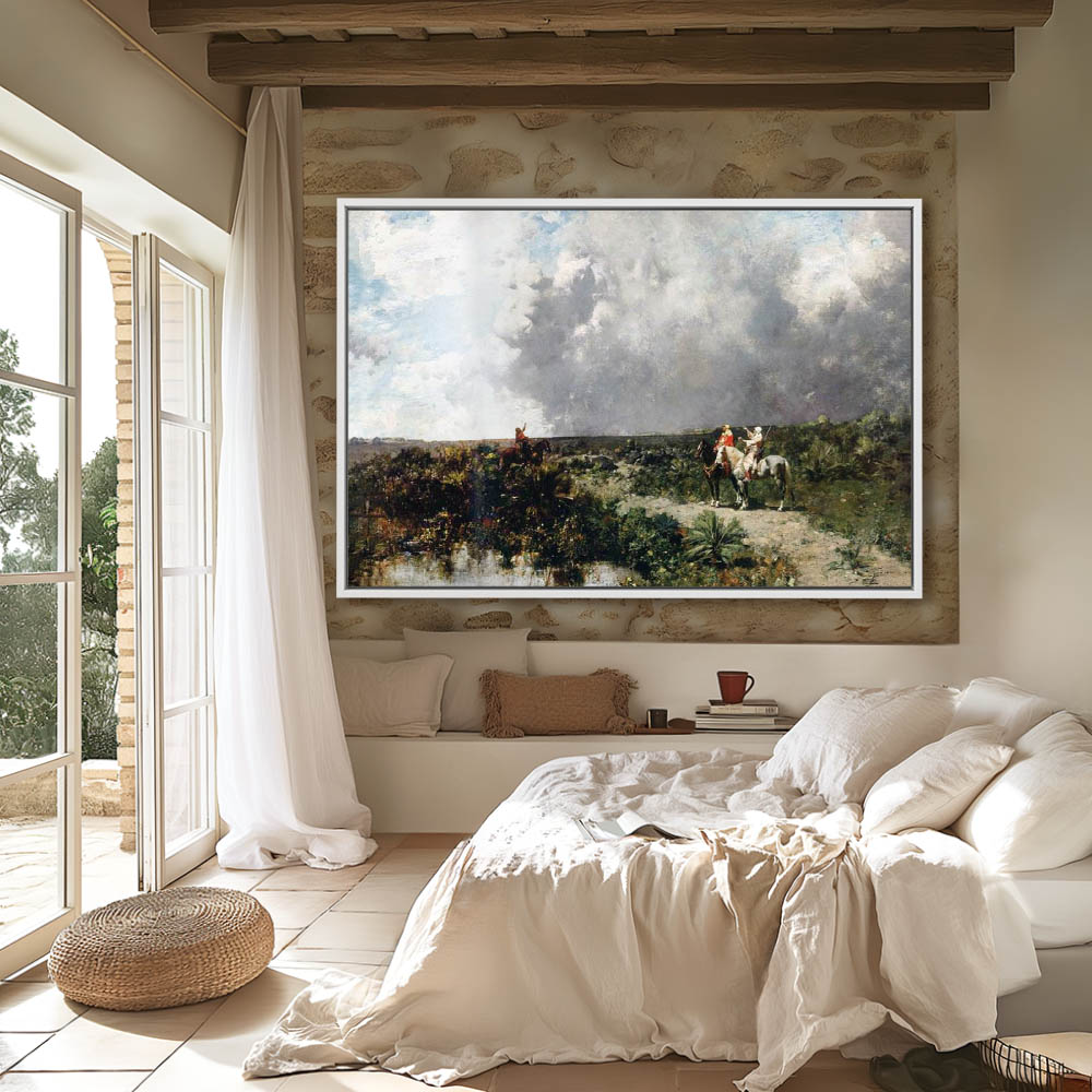 Landscape Painting of Figures on Horseback Hunting