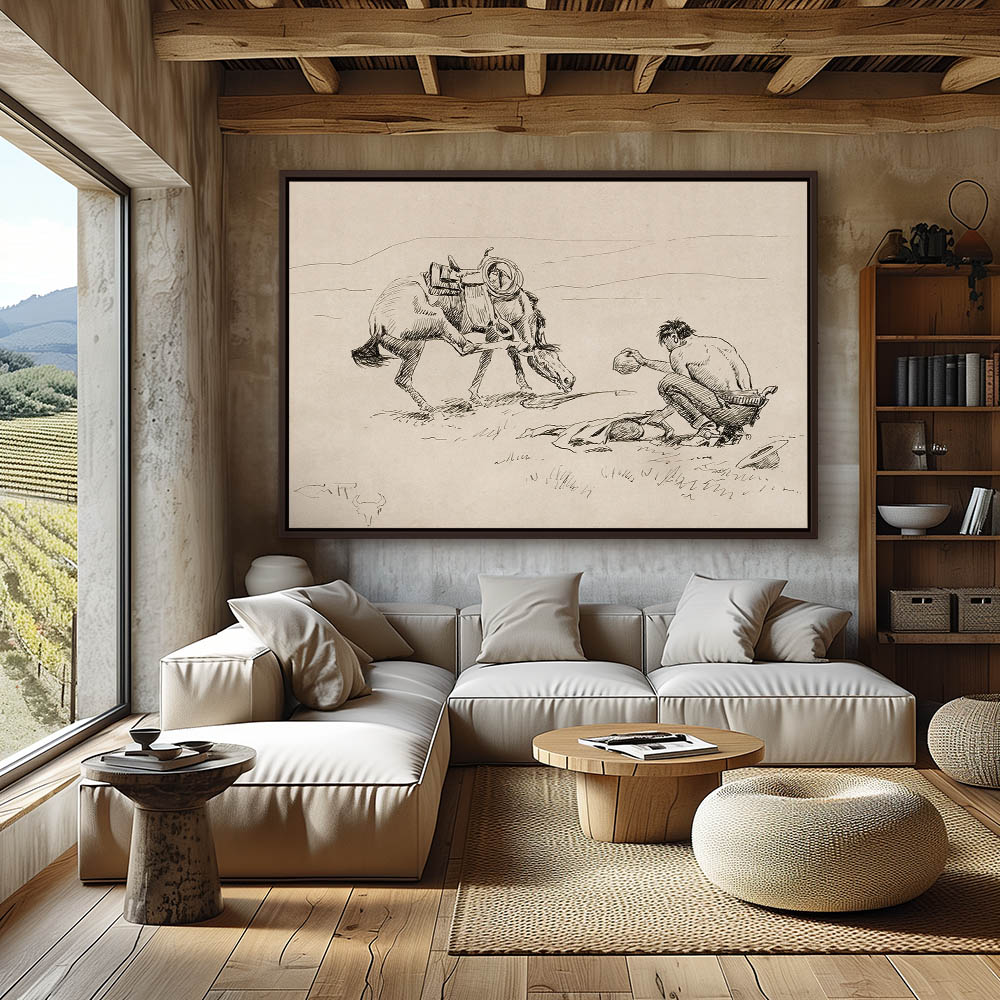 Drawing of a cowboy and horse