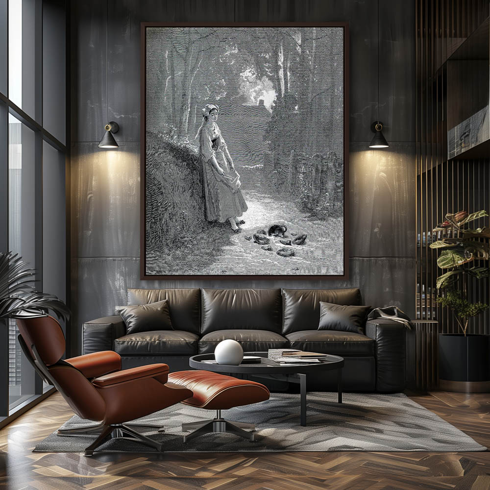 Vintage Etching of The Milkmaid and the Milk Can