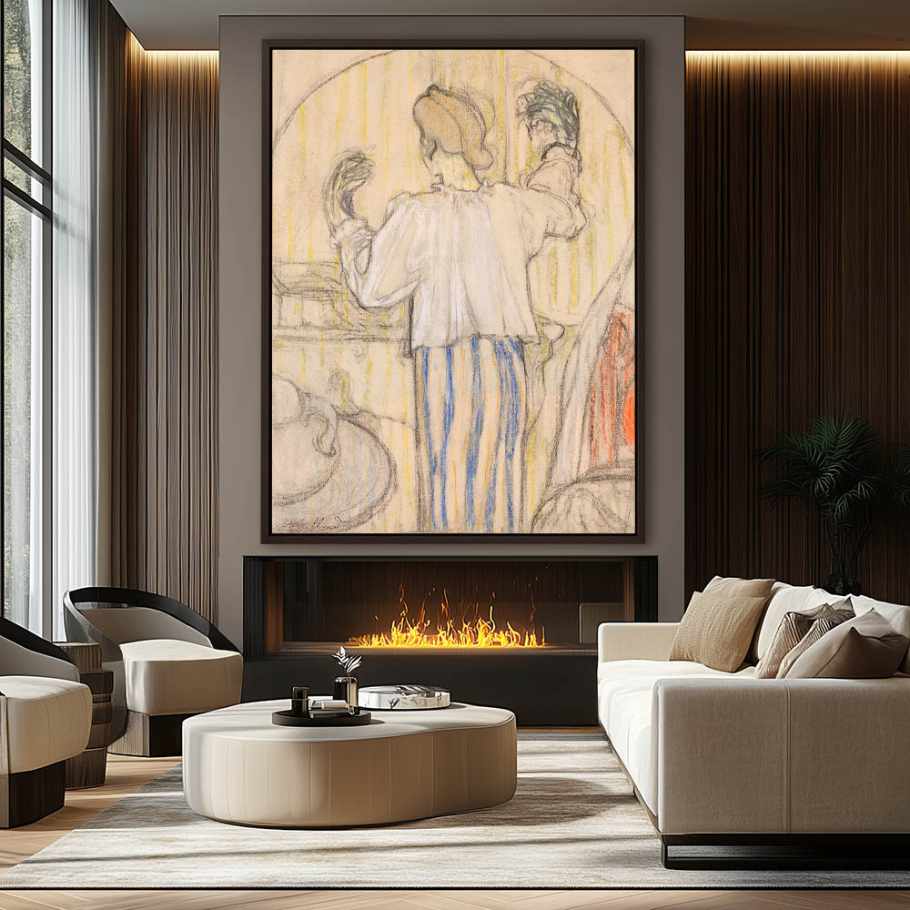Abstract sketch of a woman in front of a mirror