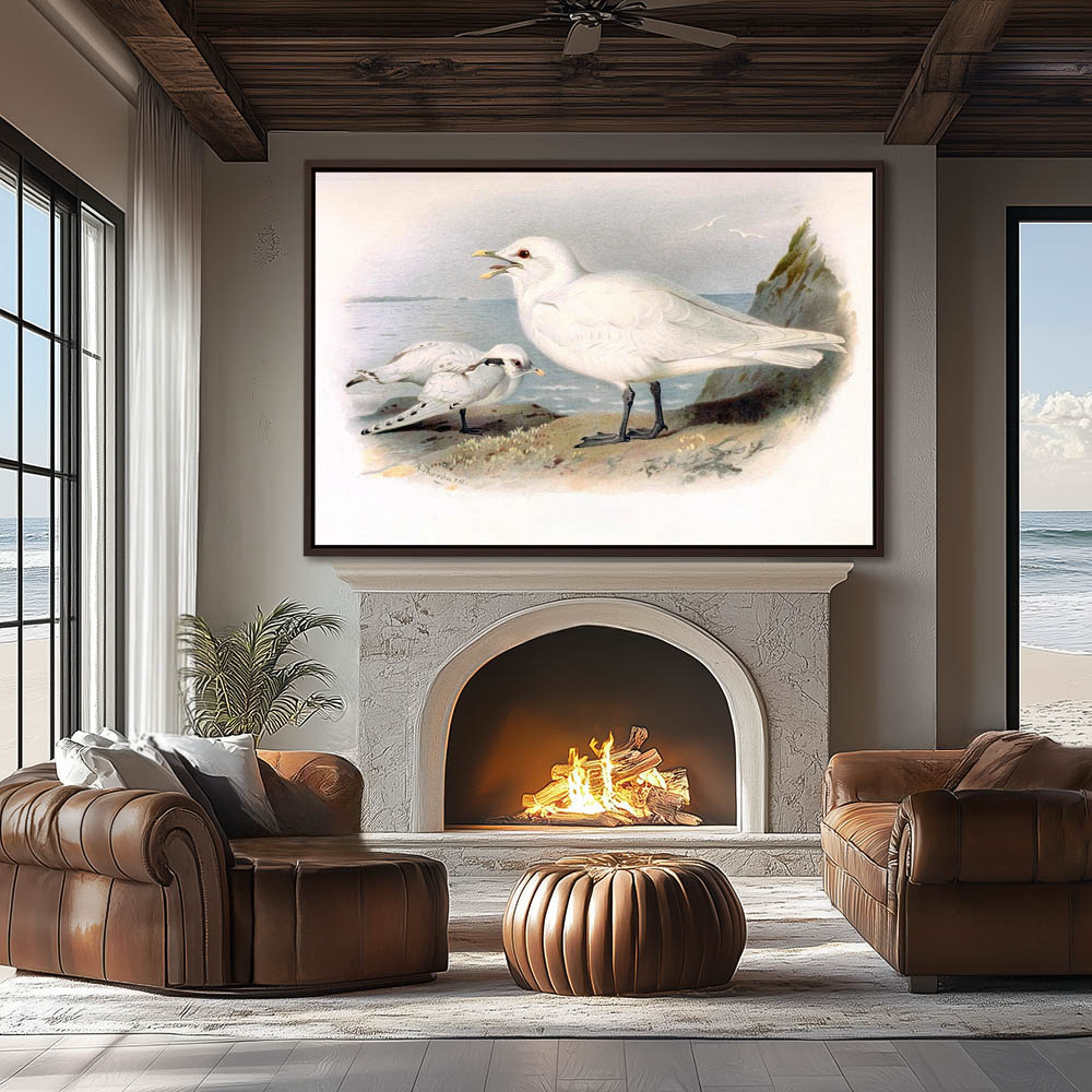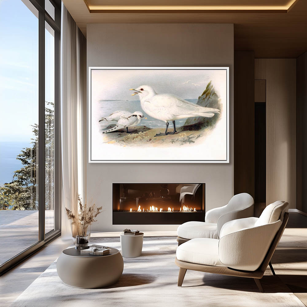 Painting of the Ivory Gulls on the Cliffs Overlooking the Sea