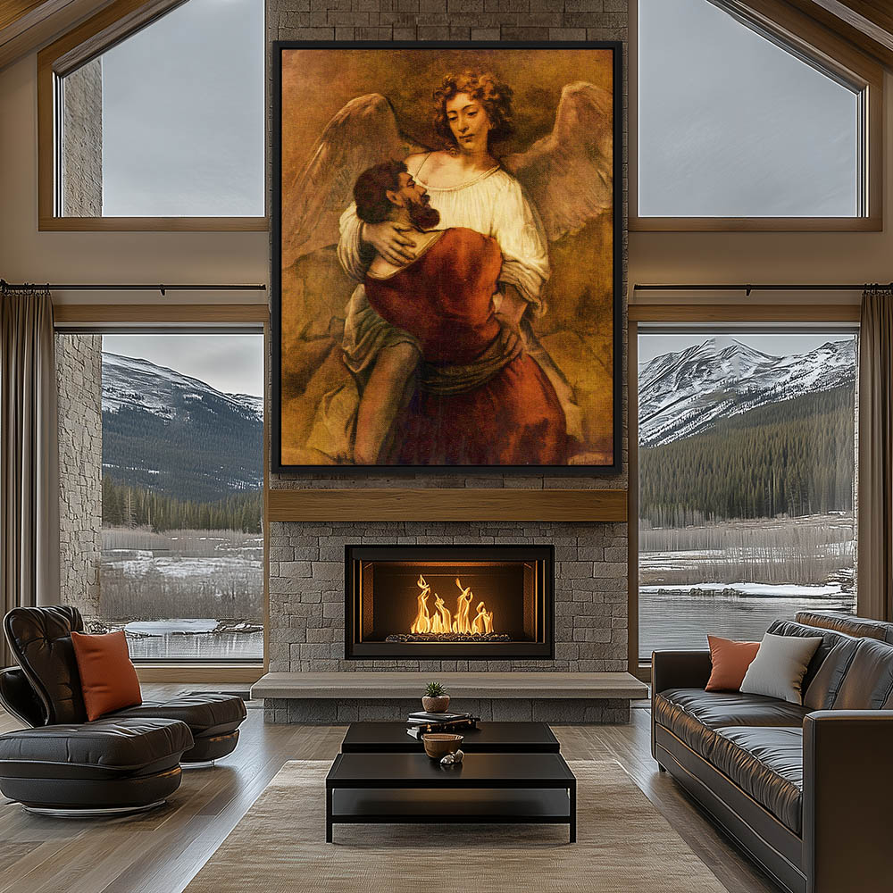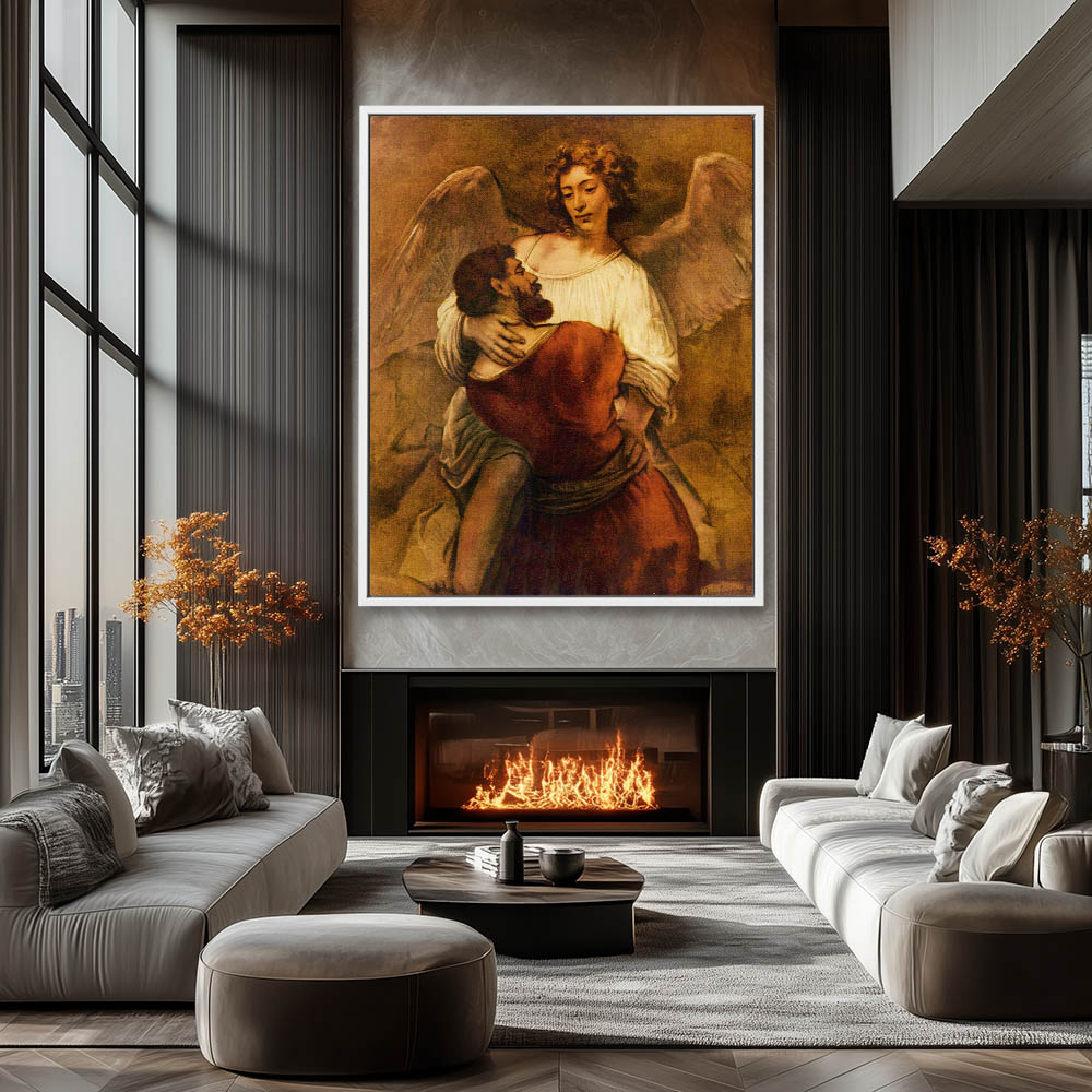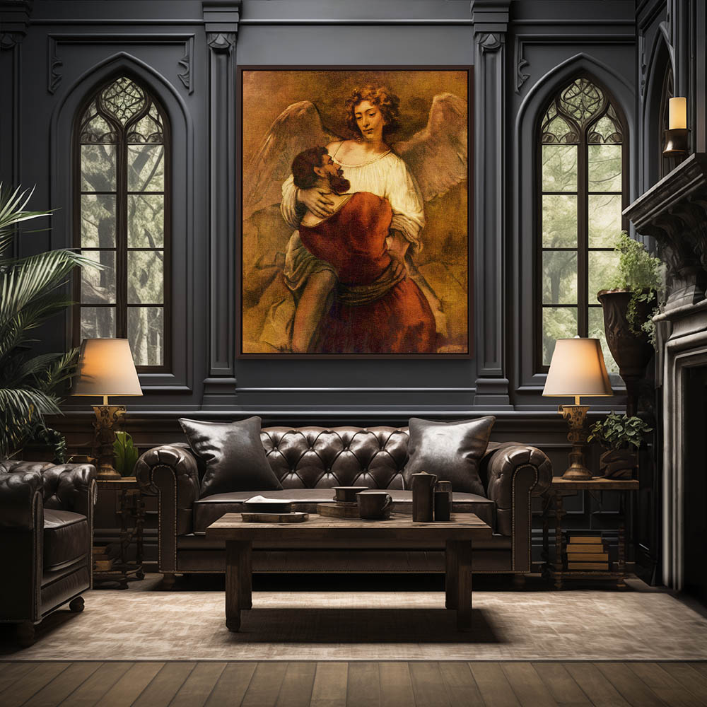 Religious Drawing Depiction of Jacob Wrestling with an Angel