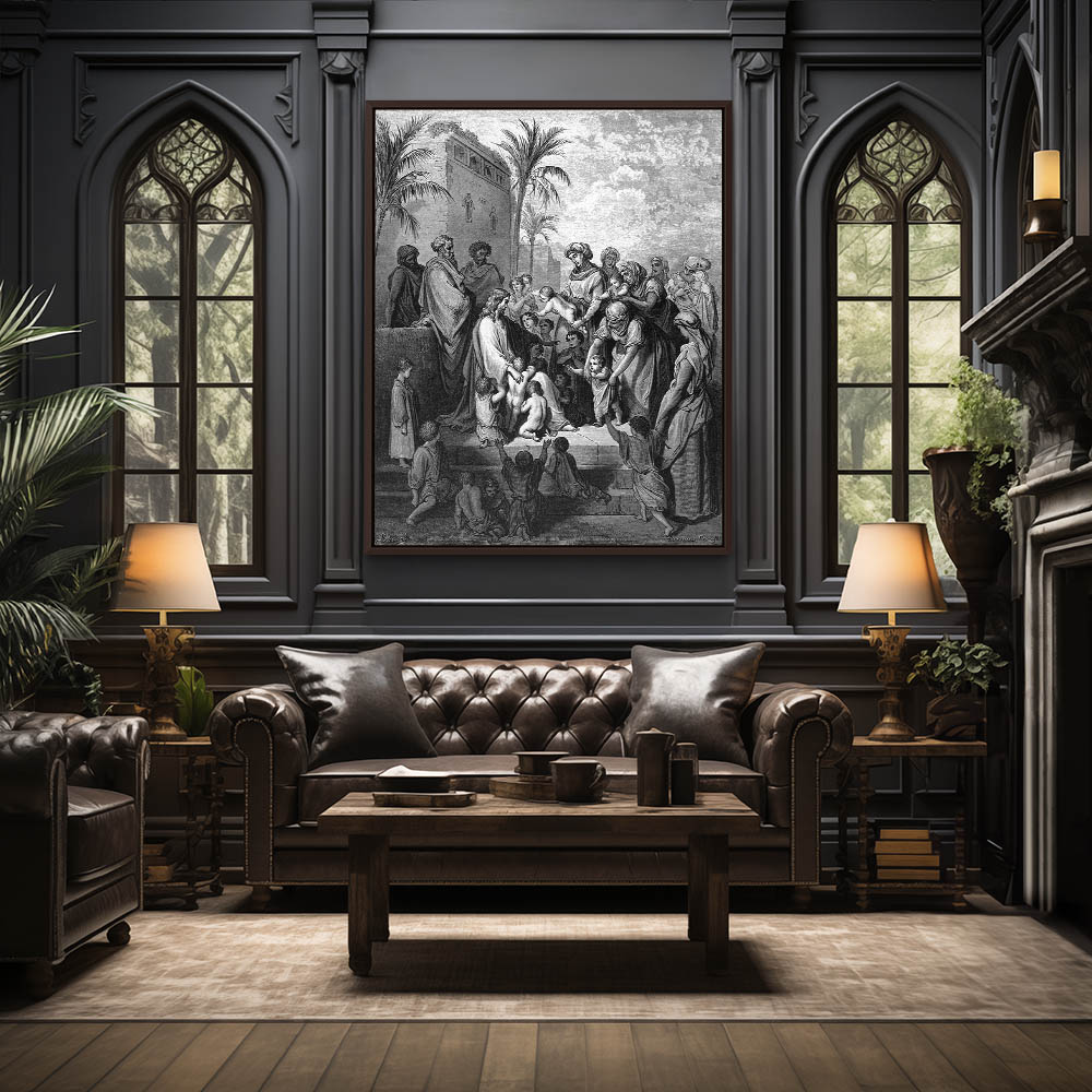 Vintage Etching of Jesus Blessing the Children