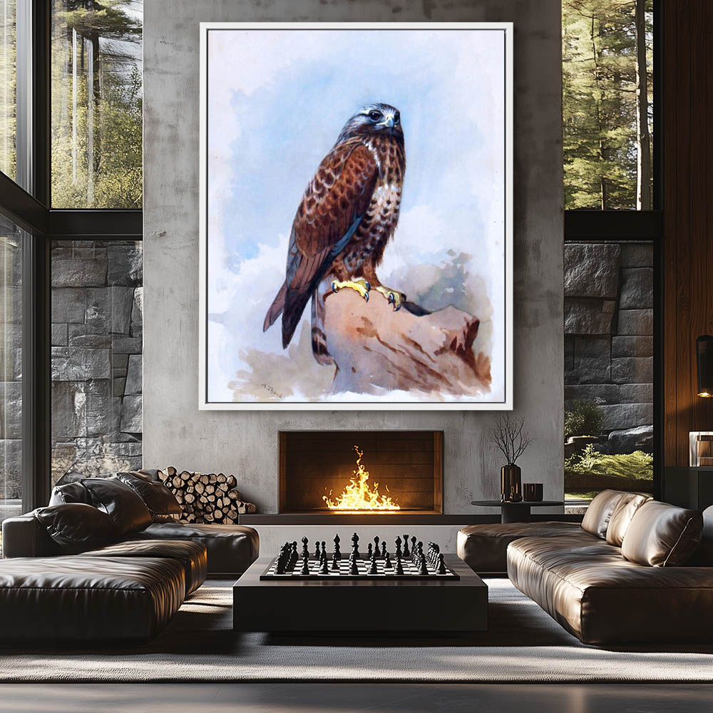 Painting of a Kestrel Bird of Prey Resting on a Rock