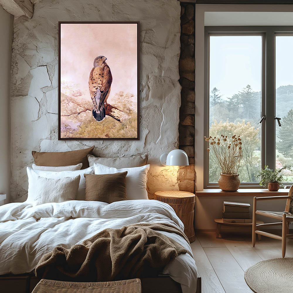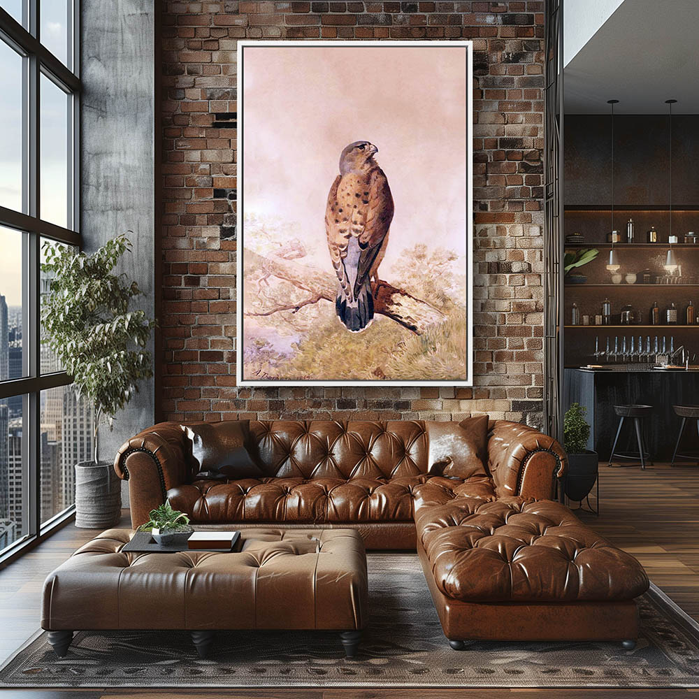 Painting of the Kestrel Bird of Prey Resting on a Limb