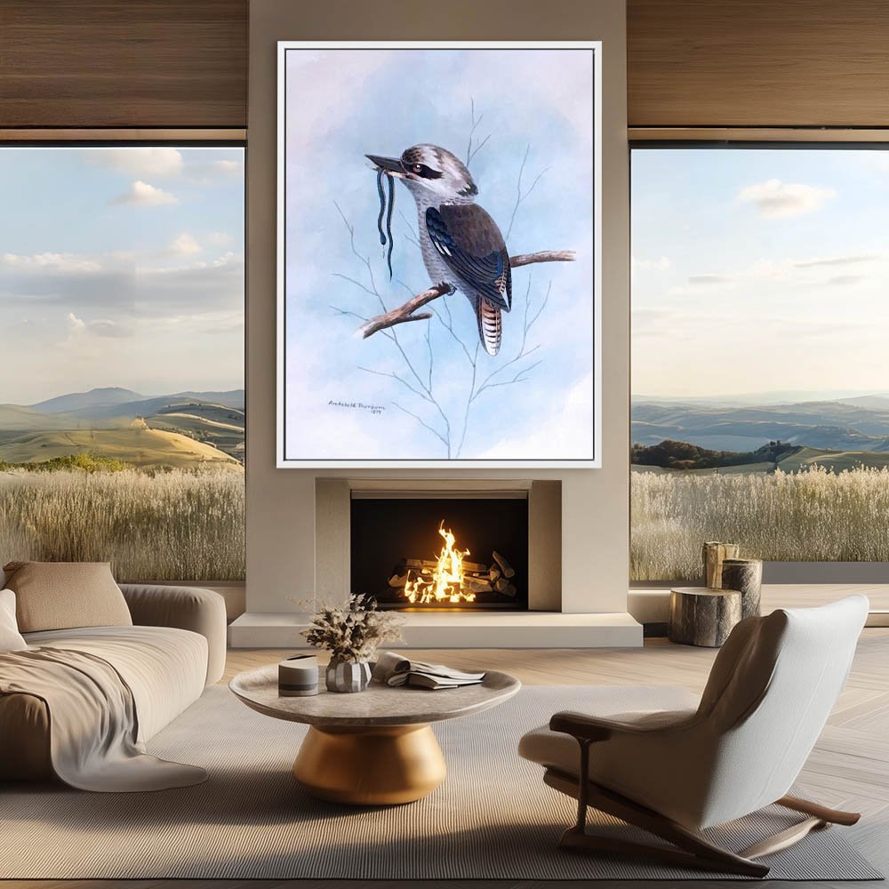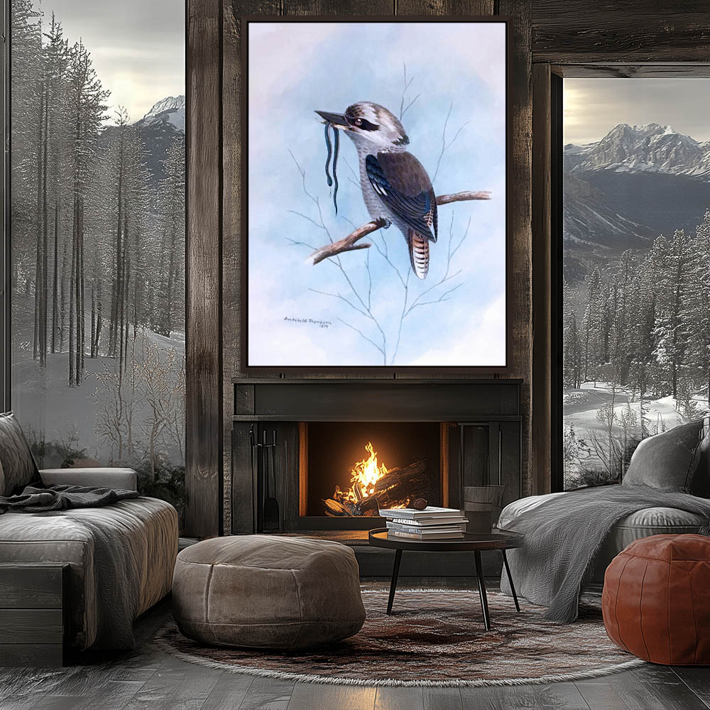 Painting of the Kookaburra Bird on a Limb with a Snake