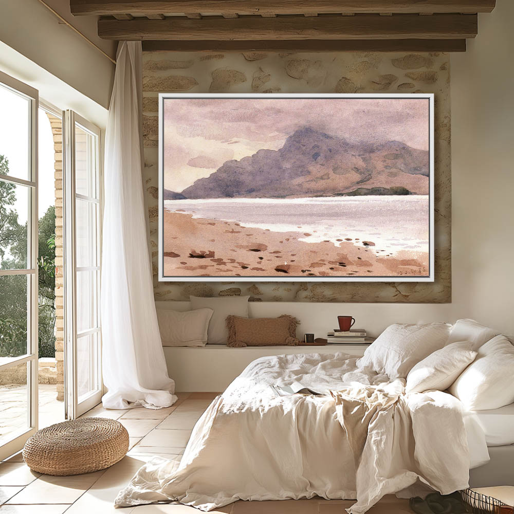 Landscape Painting with a Mountain and Shoreline