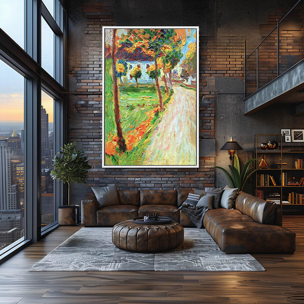 Abstract Lanscape Painting with Road to a Cottage