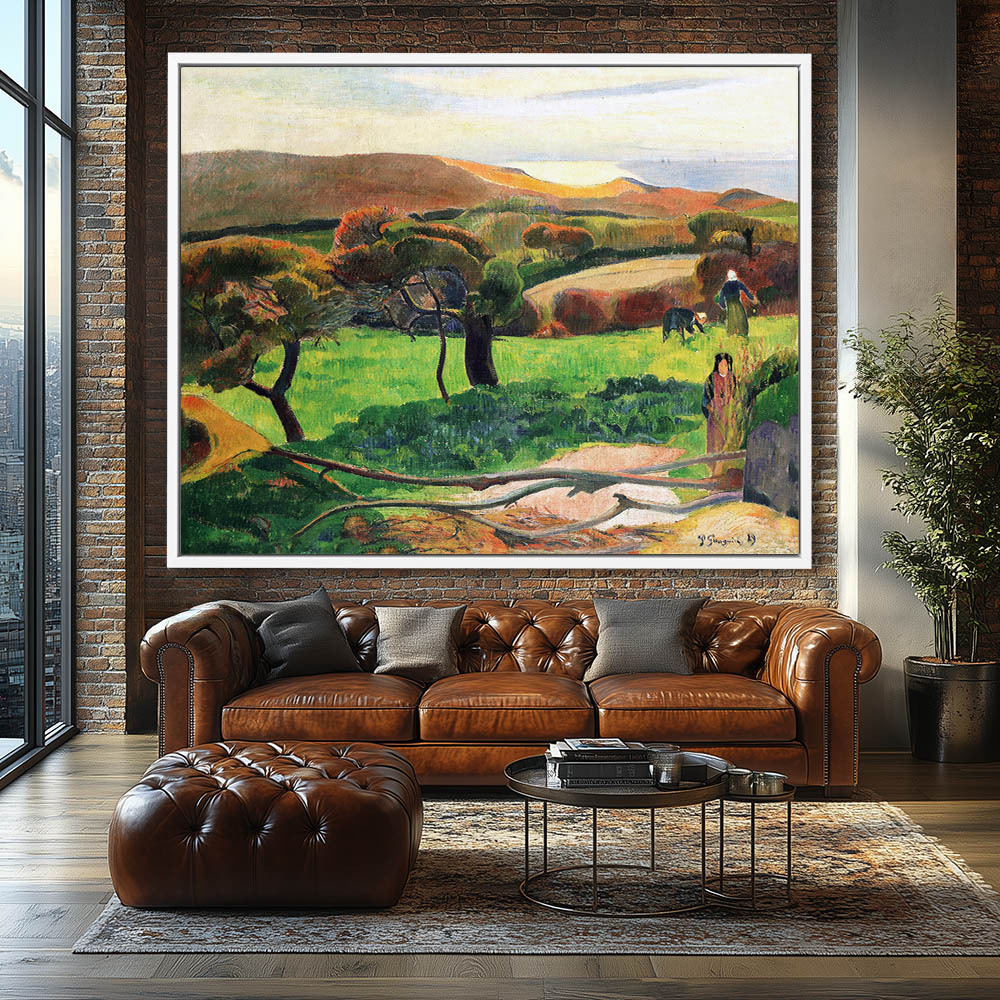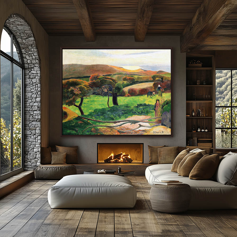 Vintage Landscape Painting of Farmland in Bretagne