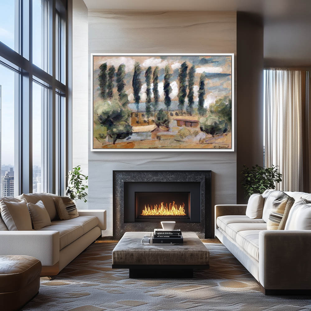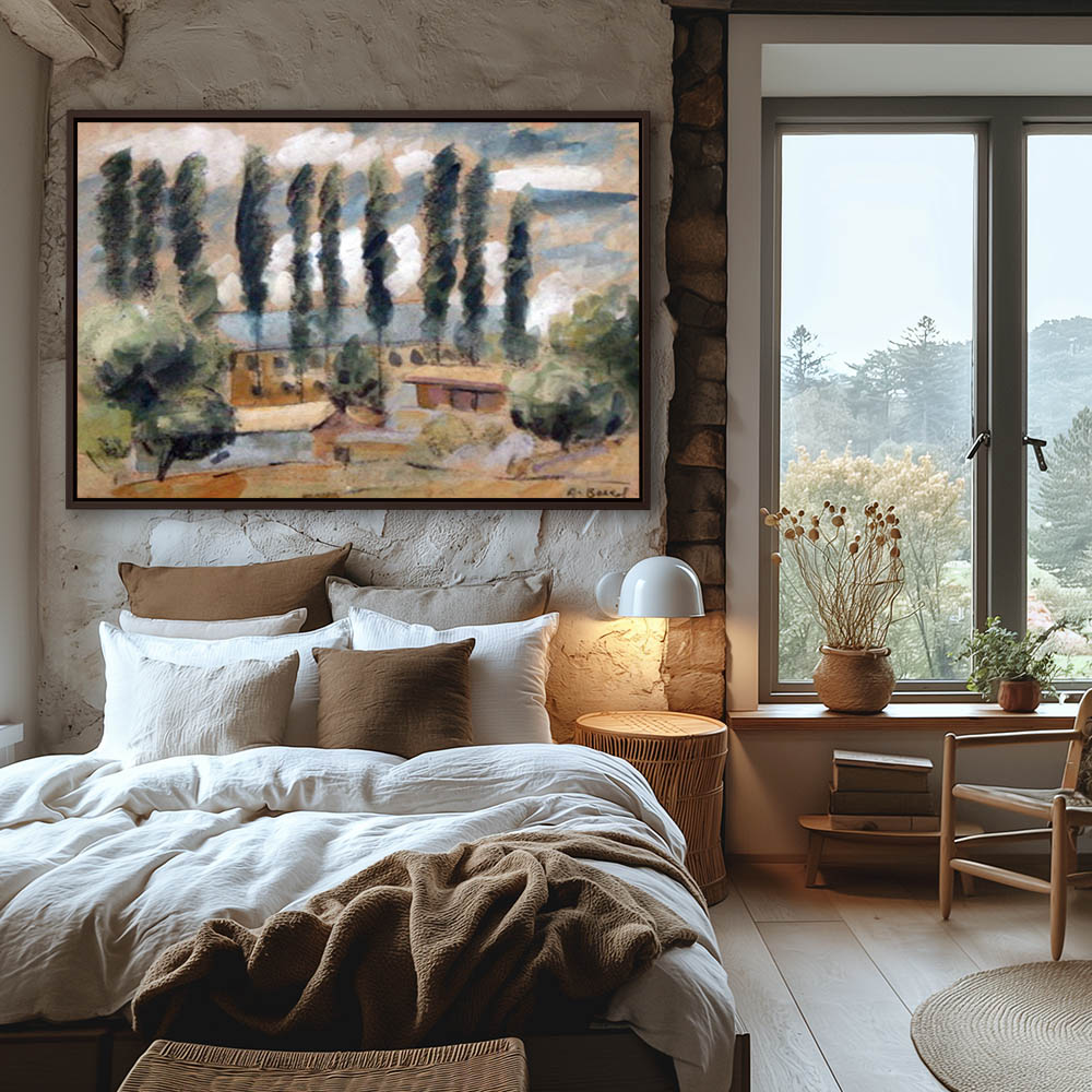 Abstract Landscape Painting with Cypress and a House