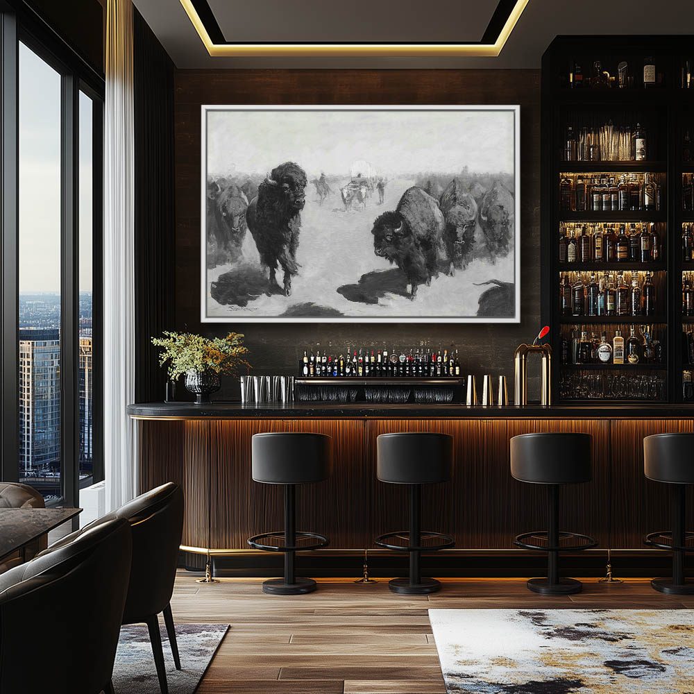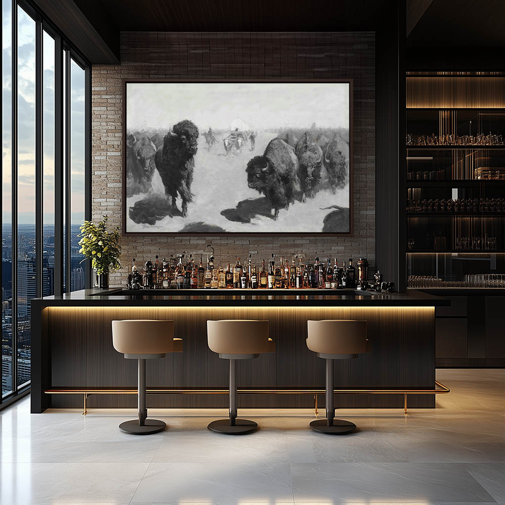 Making a lane through the buffalo herd for the wagon train