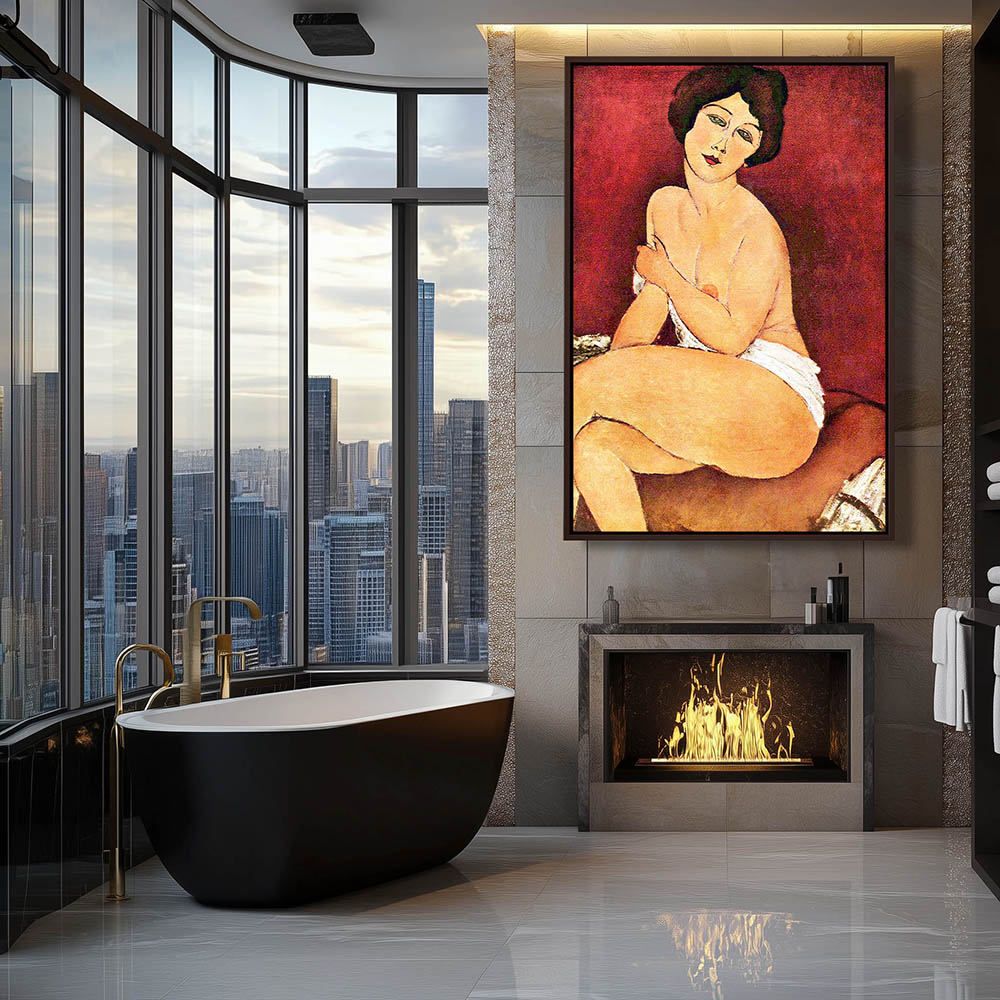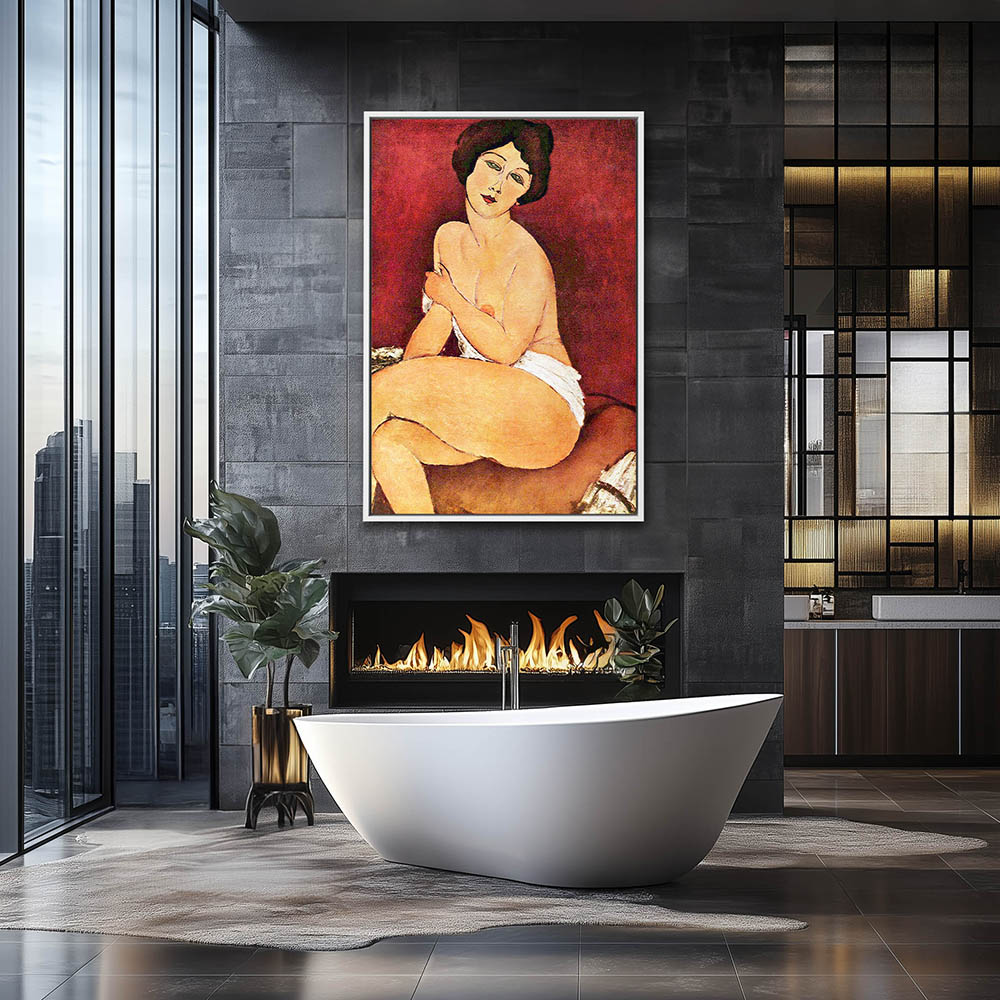 Abstract Figurative Portrait of a Half Nude Woman Sitting